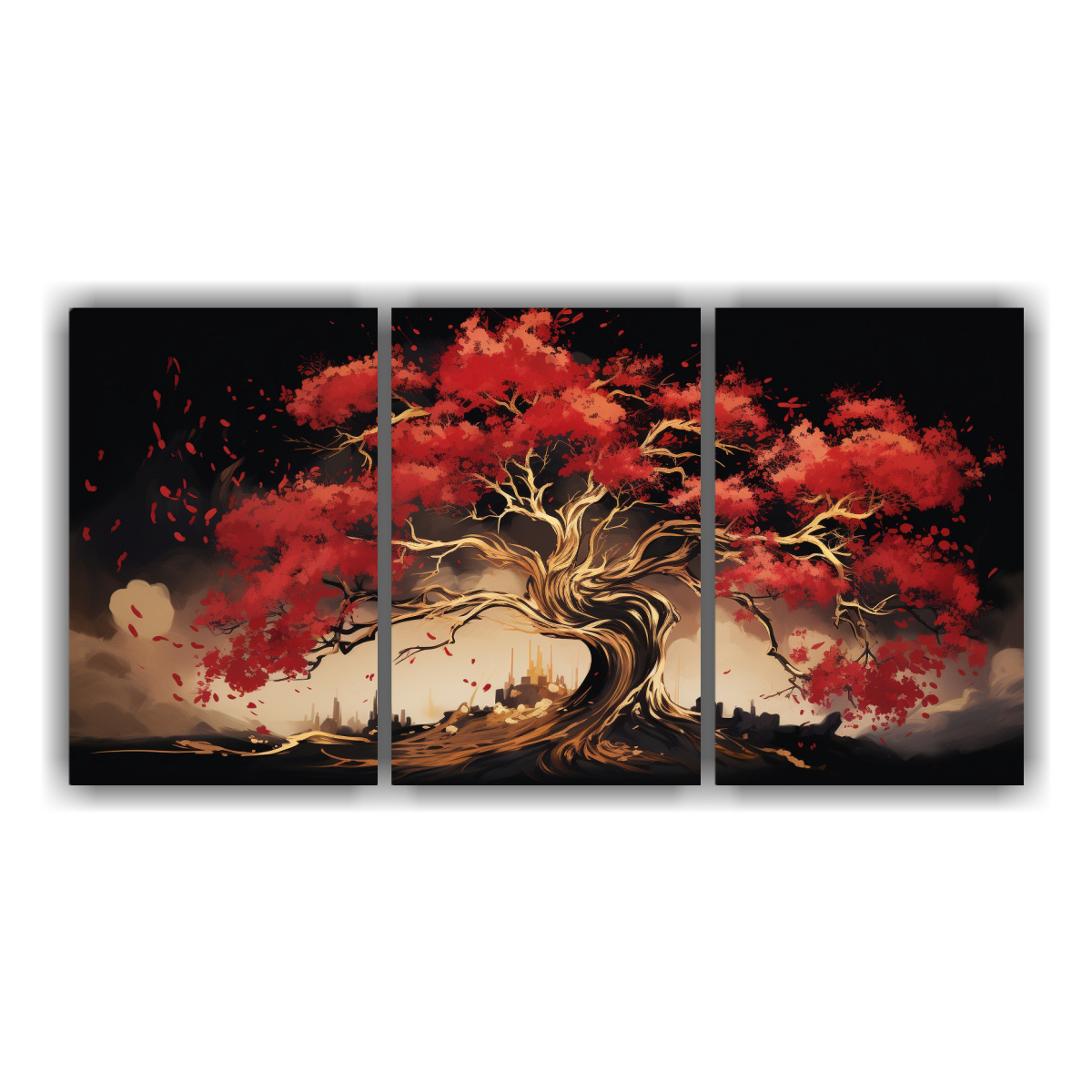 Pintura Decorativa De 3 Bellas Artes: Roble En Rojo Y Dorado En Ambiente Neonoir