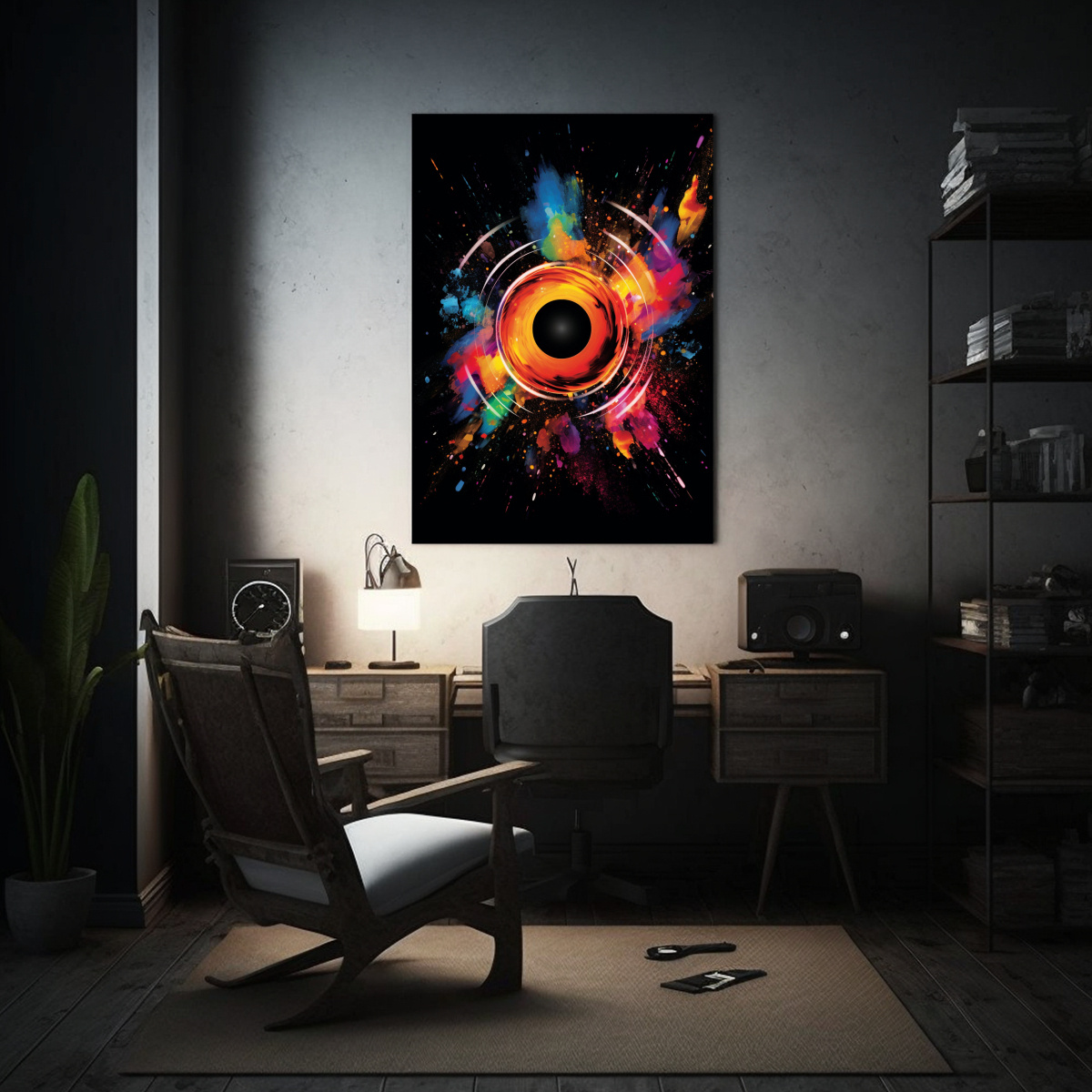 Este cuadro de abstracción actual en Canva con luz focal en el C es perfecto para darle un toque moderno y elegante a tu sala de estar Colócalo sobre un sofá en tonos neutros para resaltar su vibrante combinación de colores También puedes ubicarlo en un pasillo o en el dormitorio principal para crear un punto focal único ¡Atrévete a decorar con arte!