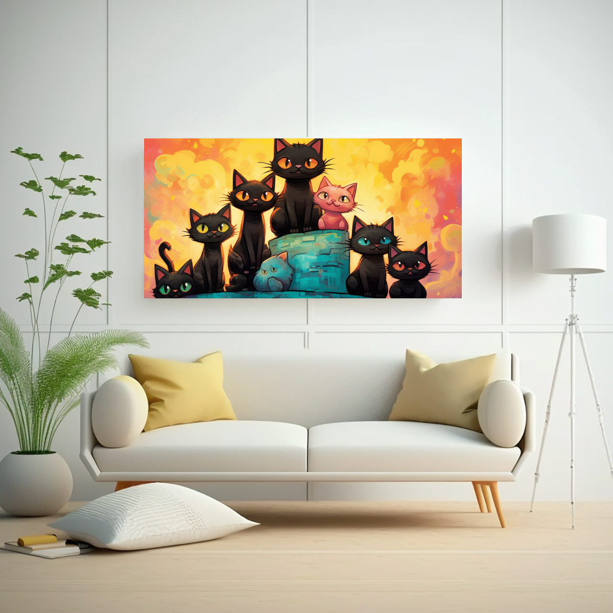 Añade un toque de elegancia a tu sala de estar, dormitorio o estudio con esta hermosa pintura decorativa de gatos negros Decora tus espacios con esta pieza única y recibe envíos gratuitos y rápidos en Santiago, además de envíos express a regiones