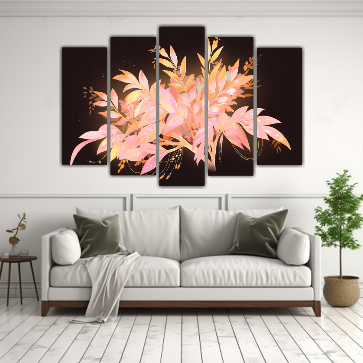 Este cuadro quedará espectacular en la pared principal de tu sala de estar, justo encima del sofá Combínalo con cojines en tonos dorados, rosas y negros para lograr una armonía perfecta Asegúrate de contar con buena iluminación para resaltar los colores y detalles de la pintura ¡Transforma tu sala en un espacio elegante y acogedor con esta pieza única de DecoCuadros!