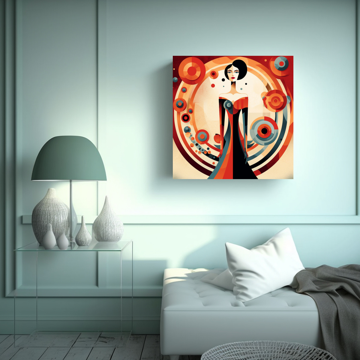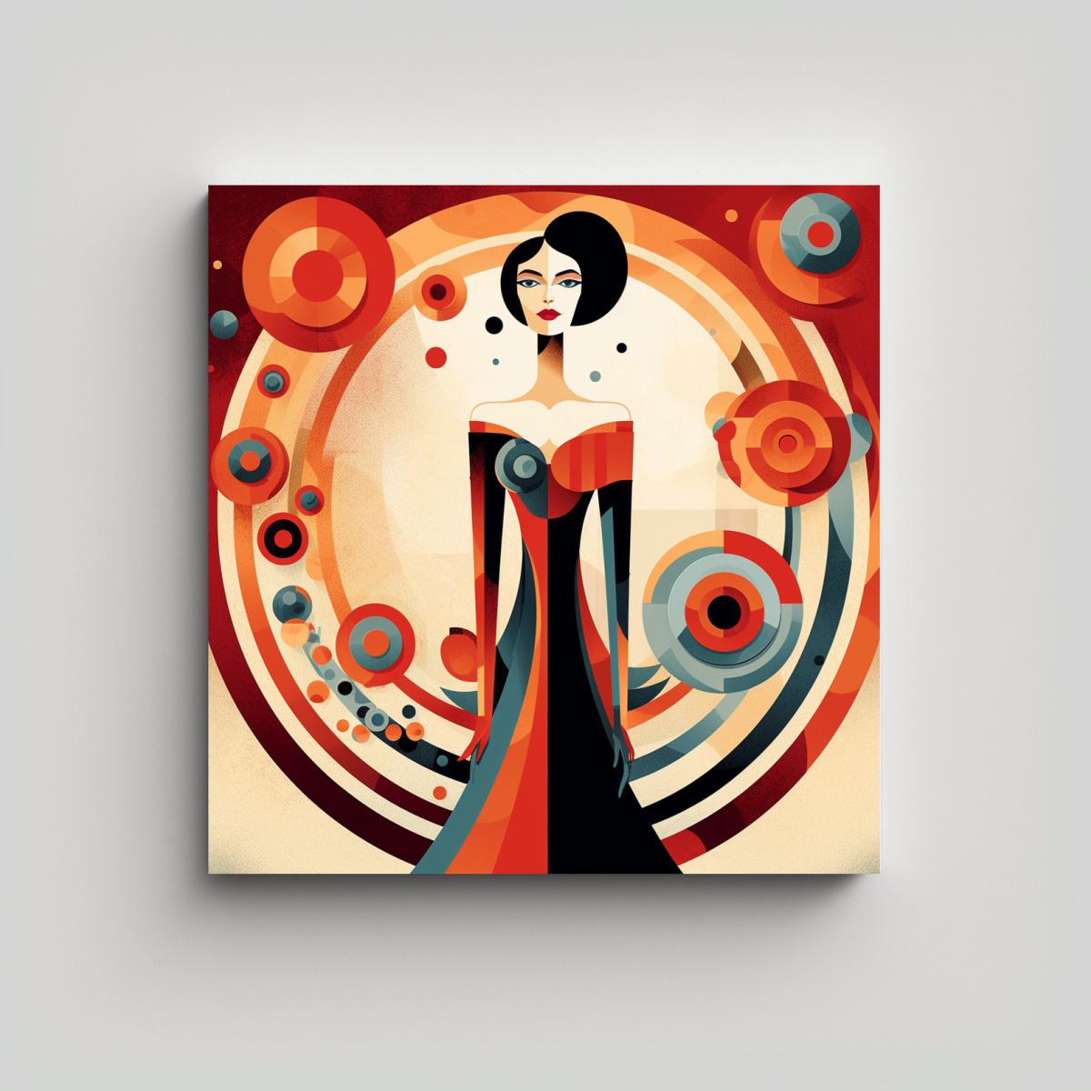 Este cuadro de empoderamiento de la mujer en tonos azul marino grisaceo, beige, carmesí, coral, plateado y gris, es perfecto para decorar tu sala de estar o espacio de trabajo Colócalo sobre un mueble blanco para resaltar su diseño creativo y equilibrio visual Combínalo con accesorios en tonos plateados y grises para crear una armonía única en tu ambiente