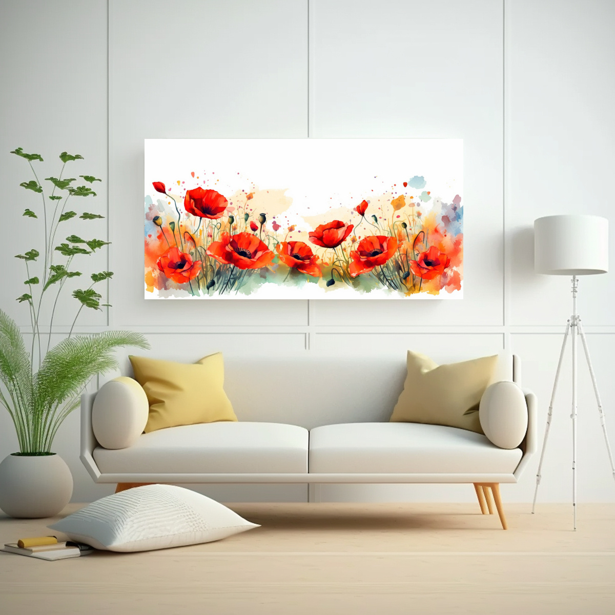 Pintura Decorativa De Campo De Amapolas Estilo Acuarela Vanguardista Luminosa