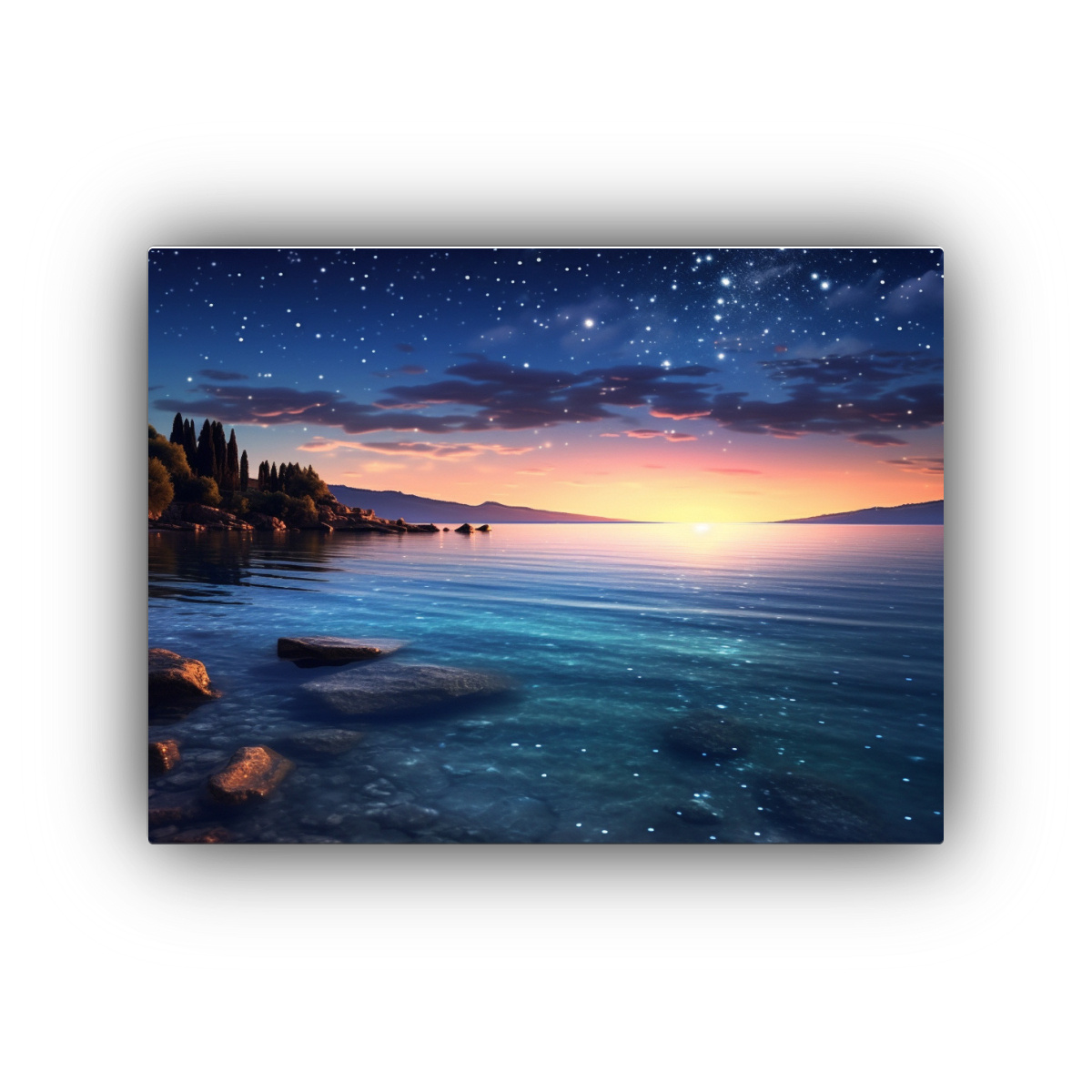 Añade vitalidad a tu hogar con este cuadro de una hermosa noche estrellada Los colores turquesa y carmesí le darán un toque único a tu decoración Adquiere arte de alta calidad y diseño exclusivo en DecoCuadros