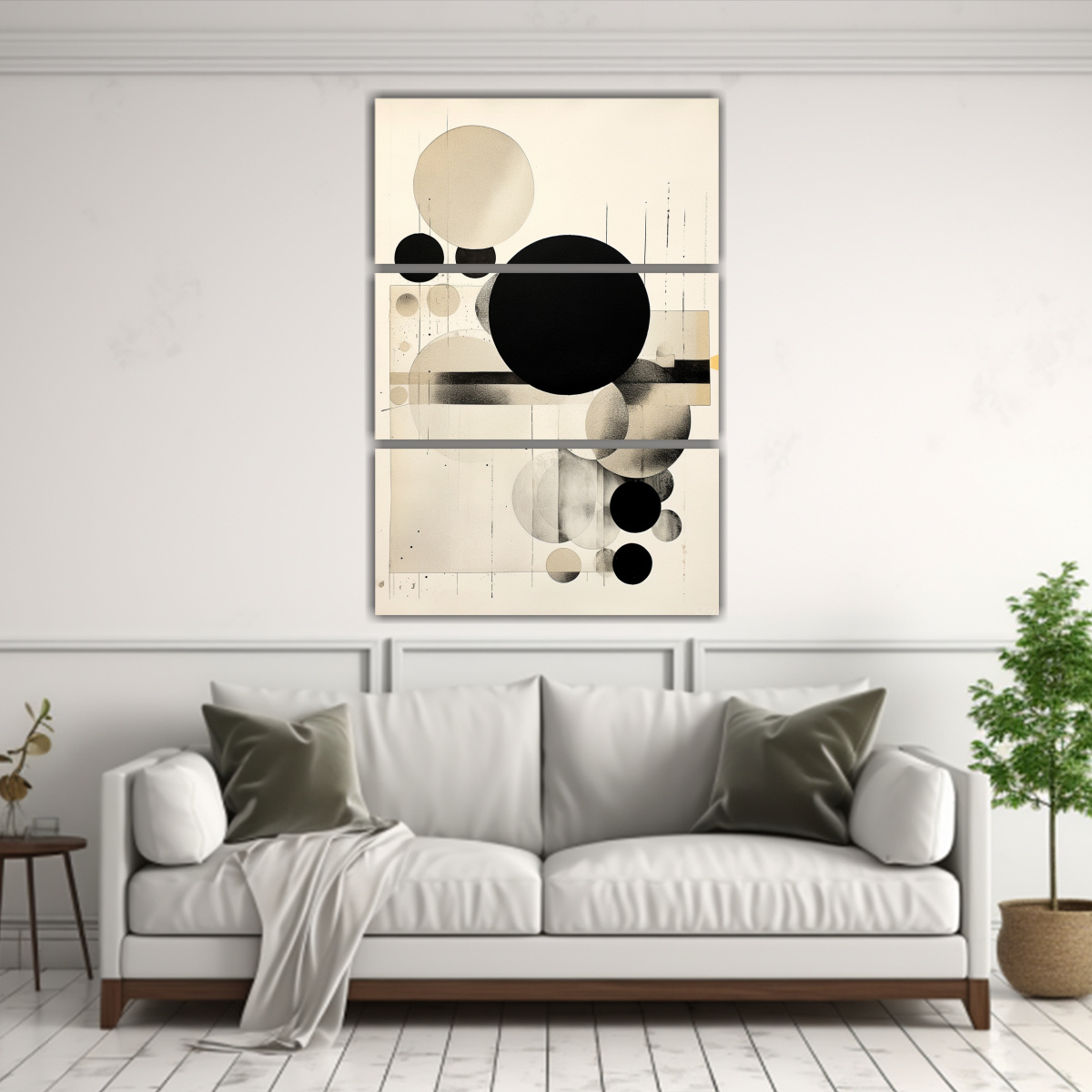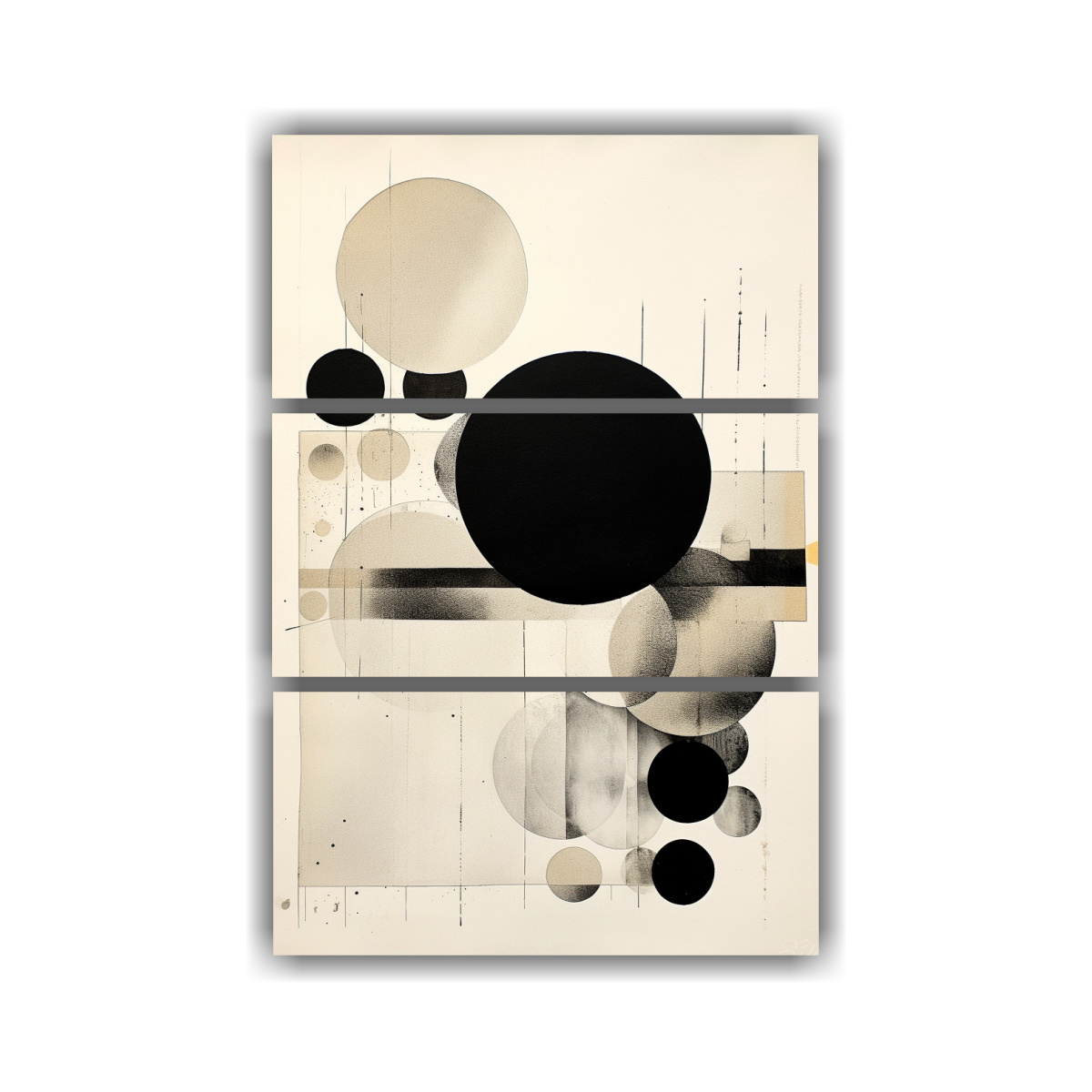 DecoCuadros ofrece una pintura decorativa de concepto urbano con círculos en papel al estilo de contraste Disponible en beige, negro, gris y plateado Diseño exclusivo de nuestra tienda Impresos en tela de alta calidad con bastidores de madera