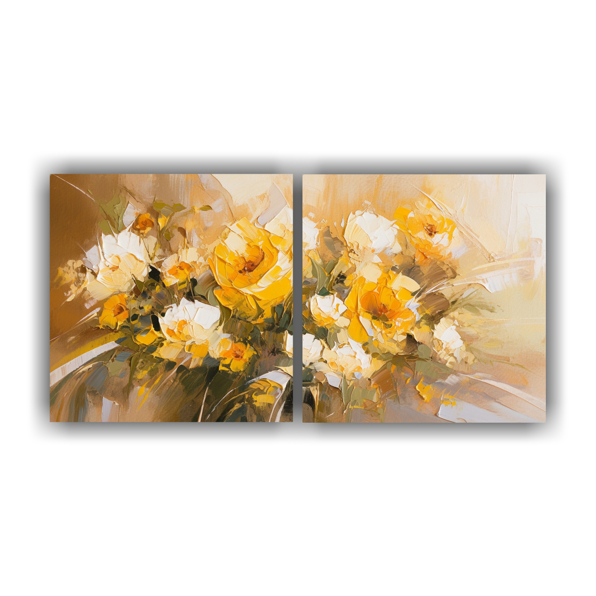 Decora tu hogar con el cuadro decorativo de contraste amarillo y dorado en lienzo con flores Con su combinación de colores como el chocolate, beige, plateado, azul marino grisáceo, dorado, amarillo claro, coral y gris, este cuadro resaltará en cualquier ambiente