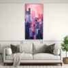 Decora tus espacios con este cuadro de escenario abstracto de la ciudad al anochecer Los colores azul marino, gris, rosado claro, dorado, lila, beige y coral le darán un toque moderno y elegante a tu hogar u oficina