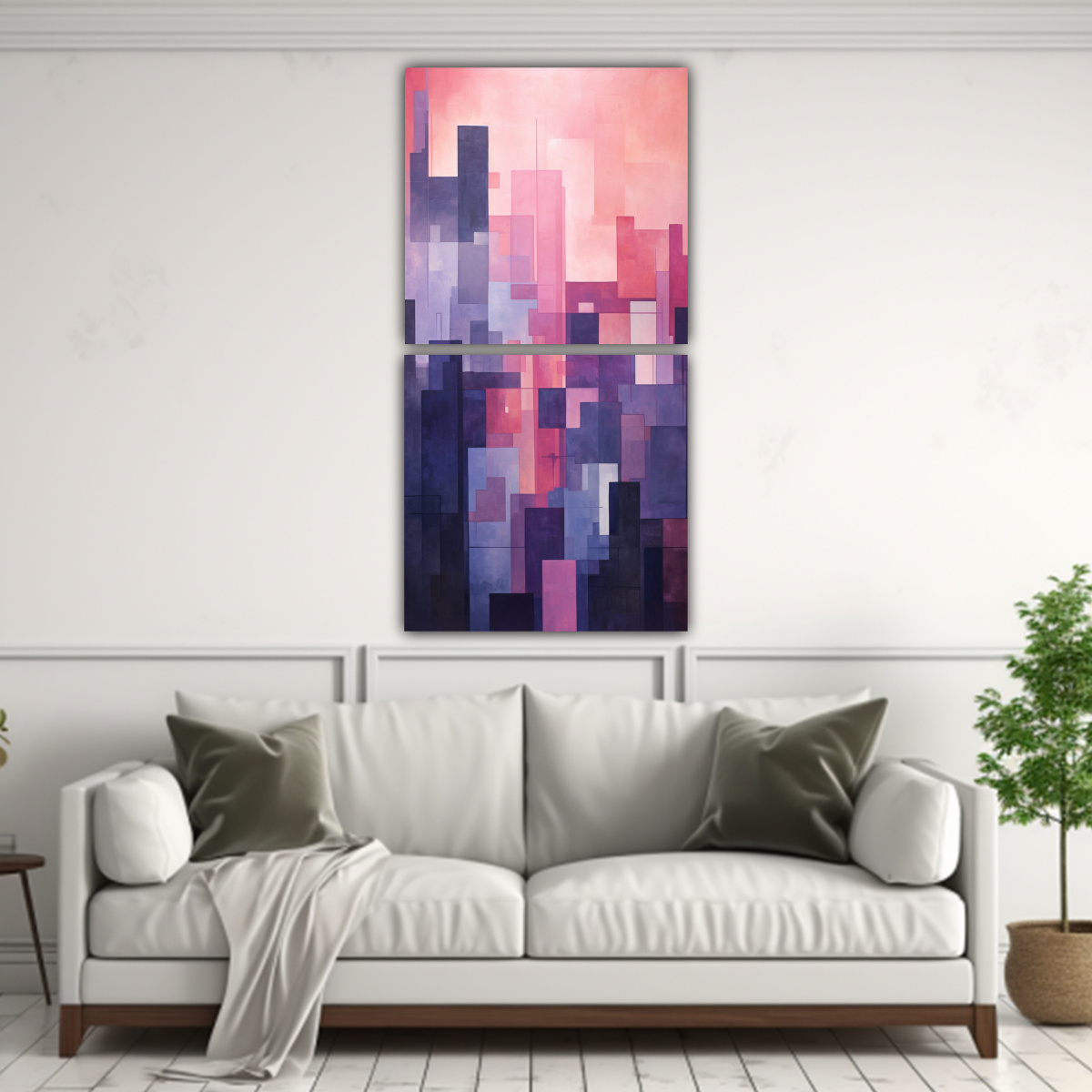 Pintura Decorativa De Diptico Estilo Galeria Escenario Abstracto De La Ciudad Al Anochecer