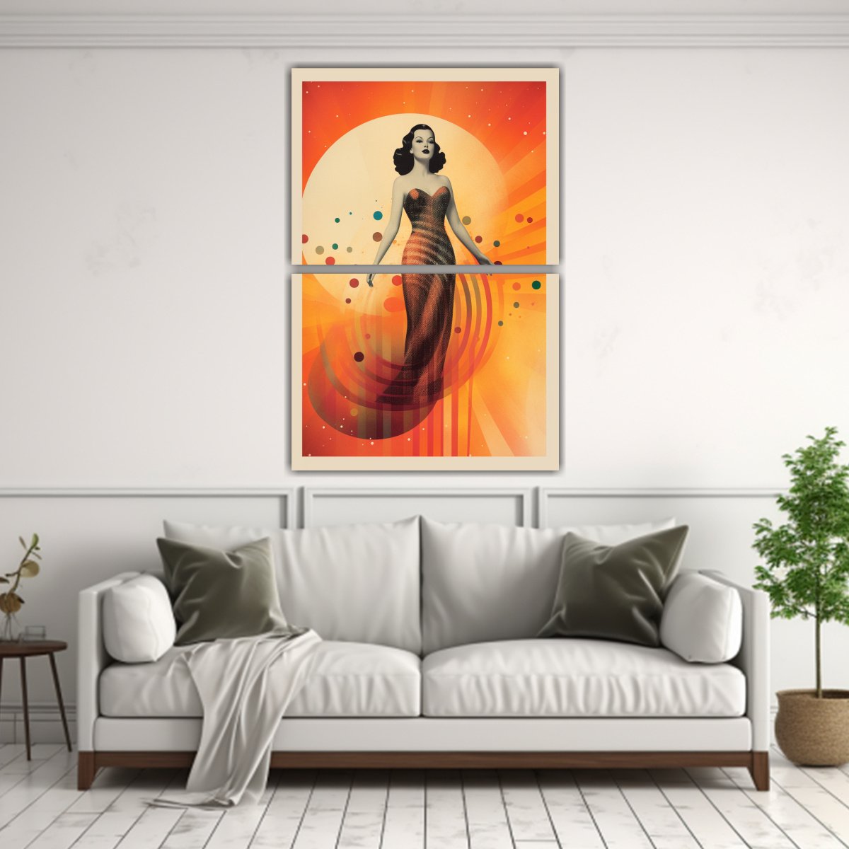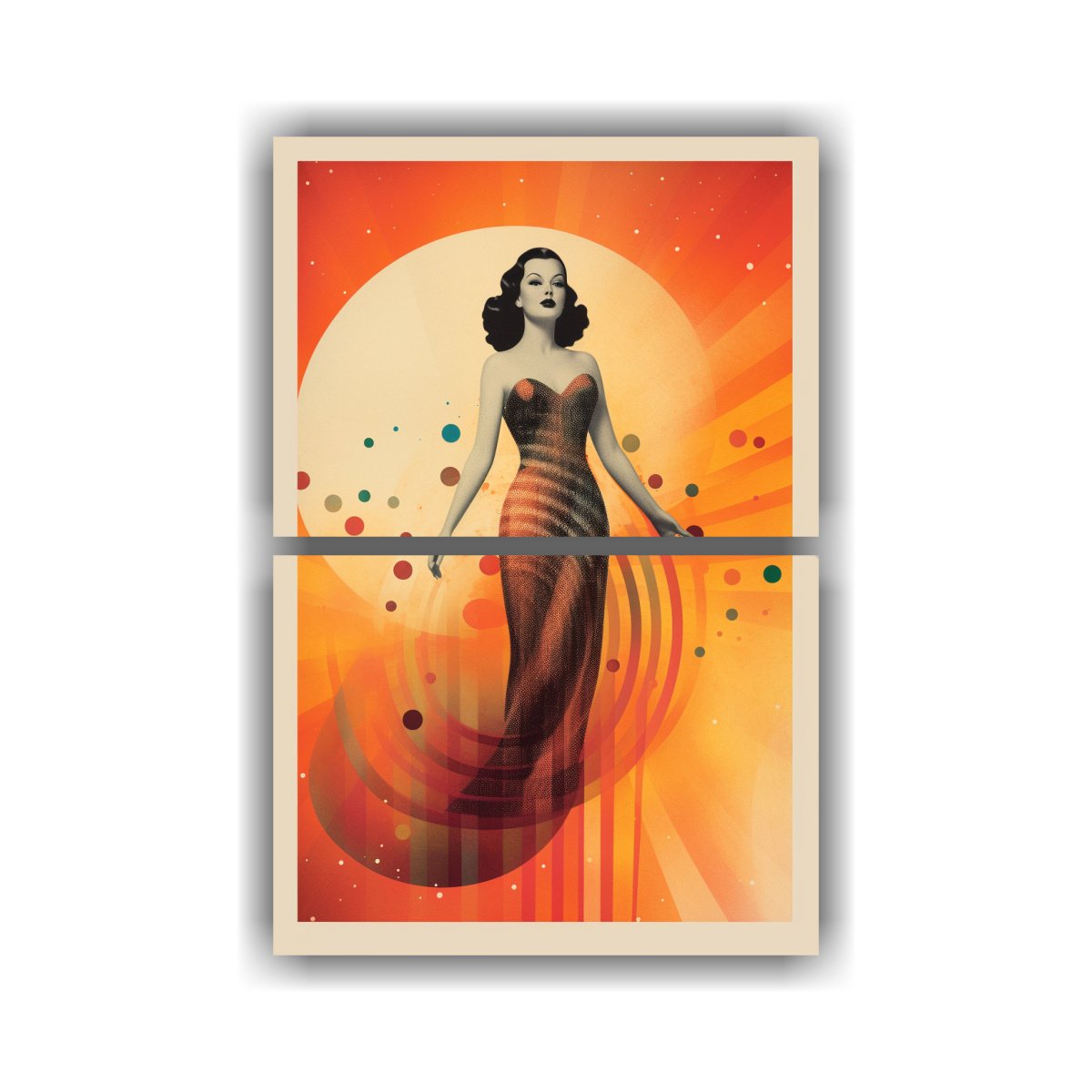Pintura Decorativa De Diptico Forma Adorno Con Figura Completa De Hedy Lamarr En Vestido Largo Estilo Bauhaus