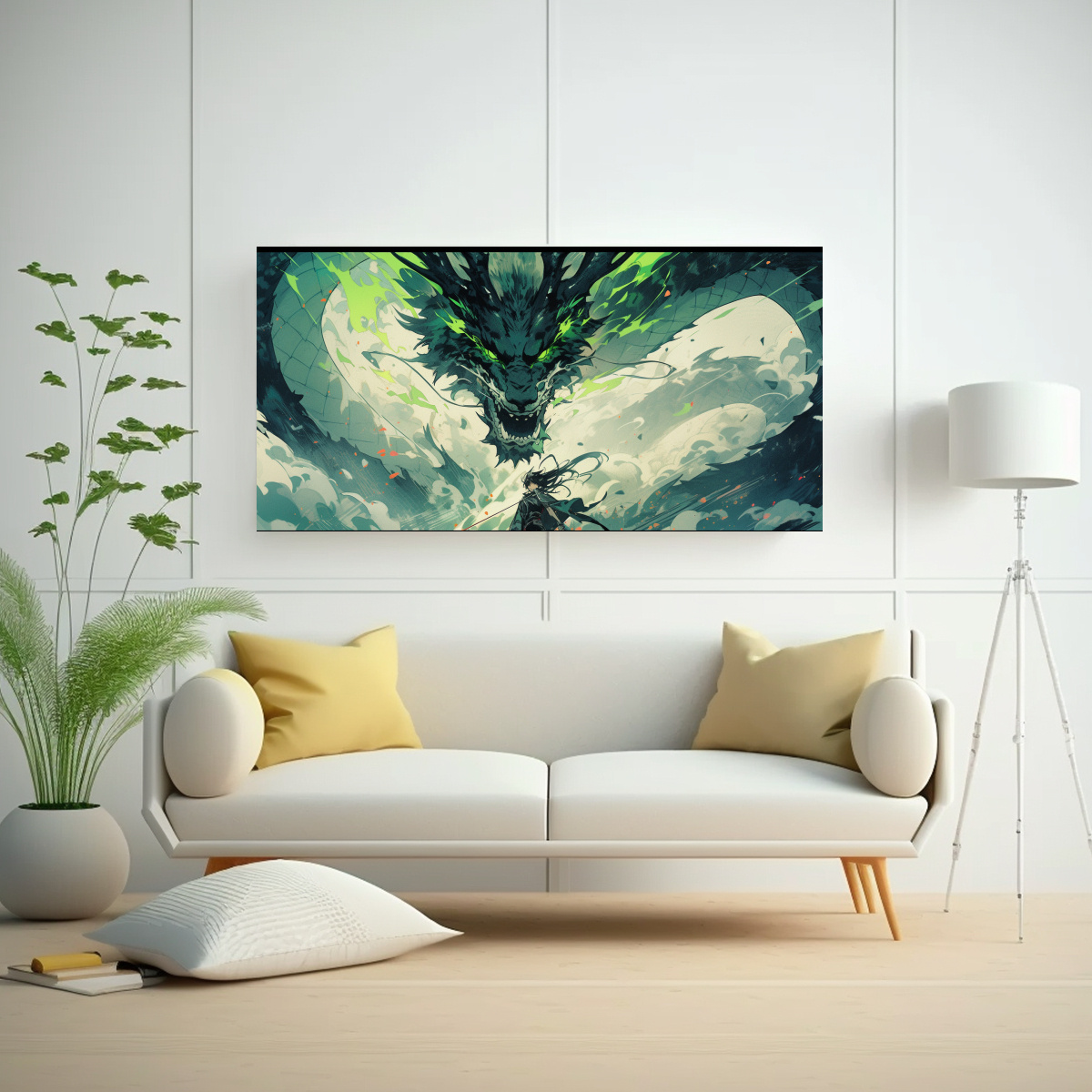 Pintura Decorativa De Dragón En Verde Y Negro Con Atmósfera Neonoir