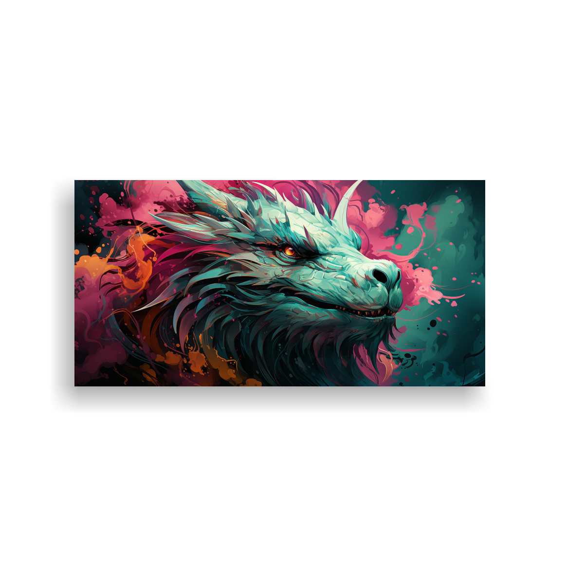 Pintura Decorativa De Dragón En Verde Y Rosa Con Atmósfera Neonoir
