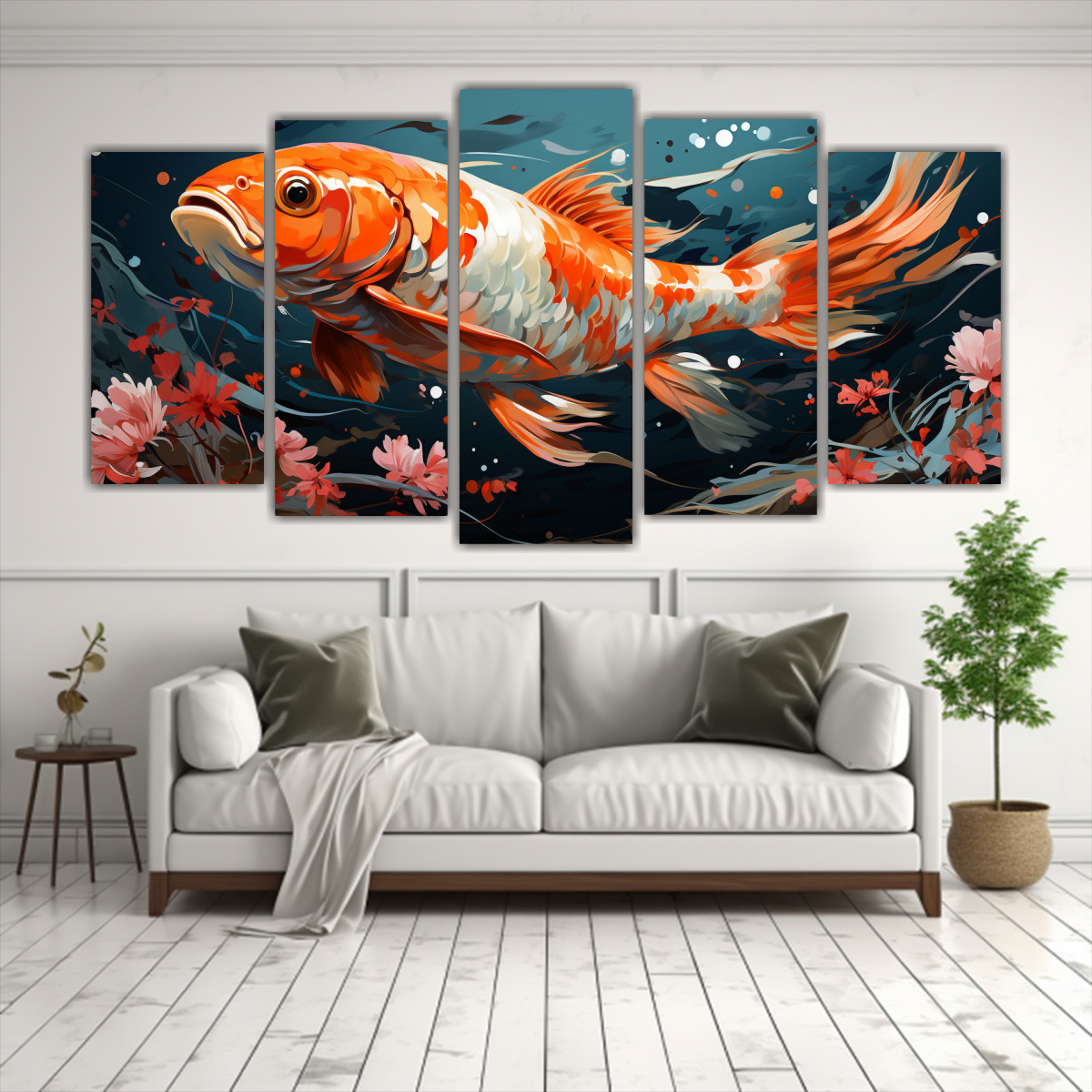 Este cuadro de un pez Koi en colores menta neo pop art es perfecto para colocar en la sala de estar sobre un sofá blanco, creando un contraste elegante y moderno También puedes ubicarlo en un pasillo largo para darle vida y color a ese espacio ¡Atrévete a decorar con estilo!
