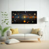 DecoCuadros te ofrece el cuadro de la alineación celestial en forma abstracta Los colores carmesí, negro, dorado, gris, amarillo claro, azul marino grisáceo y verde azulado dan vida a esta pieza única Decora tu hogar con estilo y elegancia