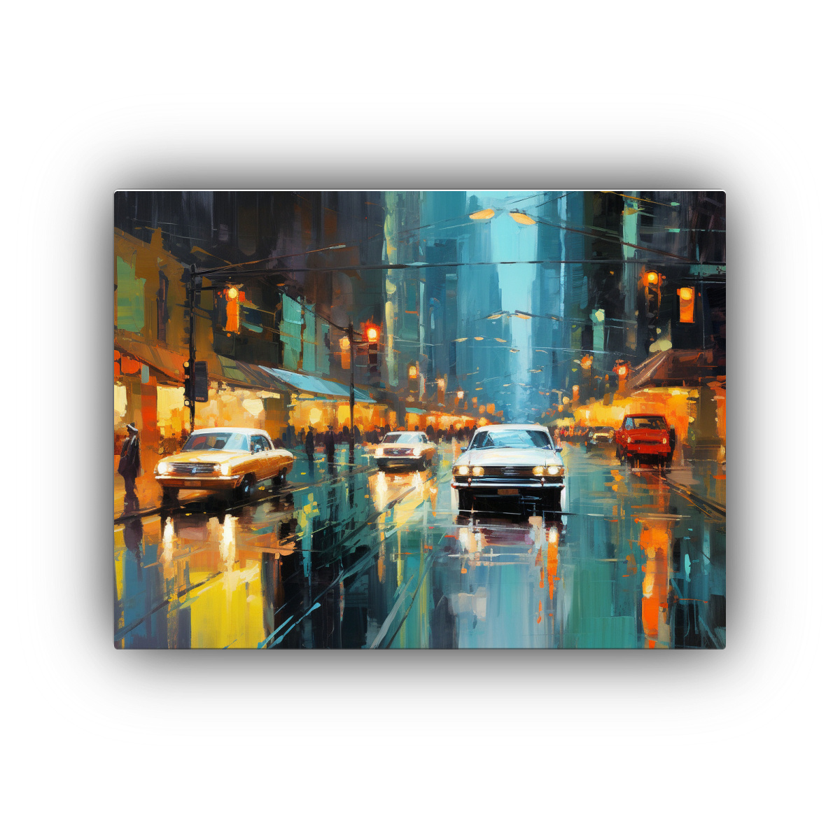 Pintura Decorativa De La Calle De La Ciudad Futurista Iluminada Por Rhett B.