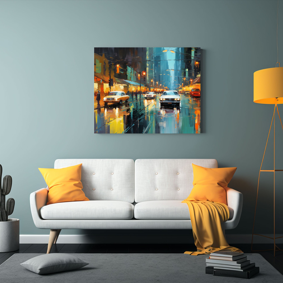 Este cuadro de la ciudad futurista iluminada es ideal para resaltar en tu sala de estar Colócalo en una pared amplia y bien iluminada para crear un ambiente moderno y sofisticado Combínalo con muebles en tonos neutros para un look elegante y vanguardista