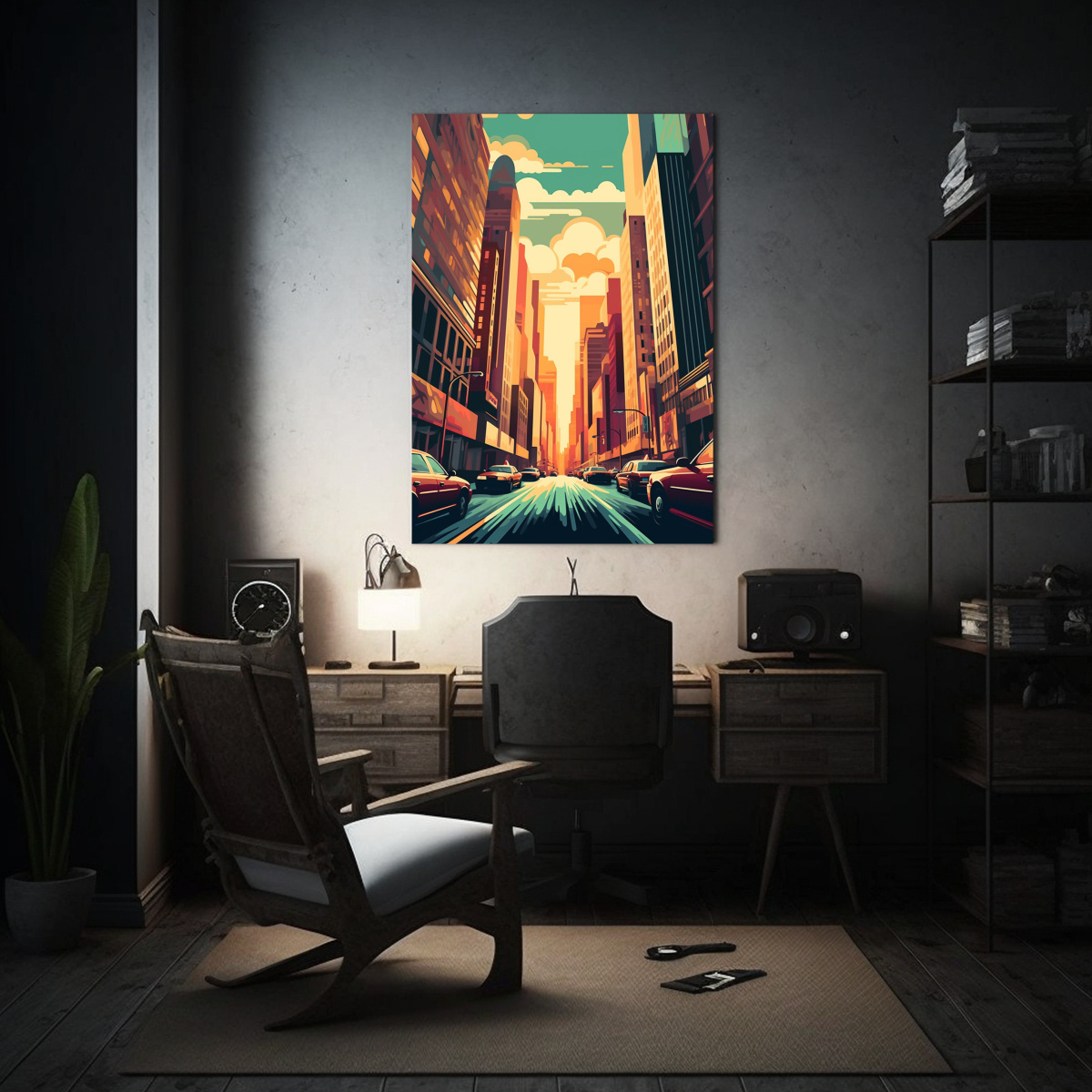 Este cuadro sería perfecto para decorar una sala de estar moderna Colócalo sobre un sofá blanco o en una pared de color neutro para resaltar su estilo retro y vanguardista Combínalo con muebles en tonos grises y beige para crear una atmósfera elegante y sofisticada ¡Será el centro de atención de tus invitados!