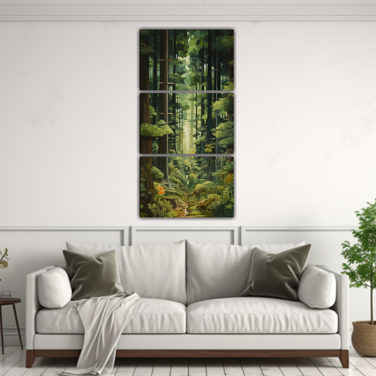 Pintura Decorativa De Lienzo Con Inspiración Abstracta Del Paso A Través De Las Capas De Un Bosque.