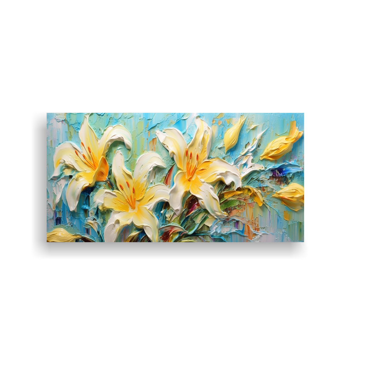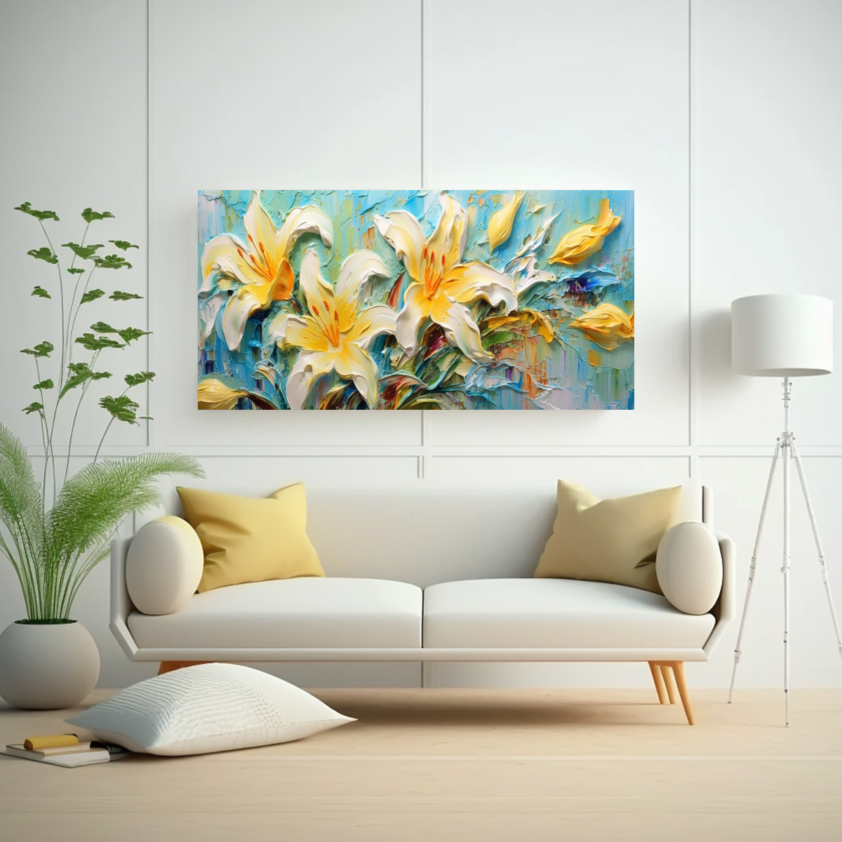 Pintura Decorativa De Lirios Coloridos Con Pintura Amarilla En El Lienzo Vd.
