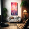 Coloca este cuadro en tu sala de estar para crear un ambiente vibrante y lleno de energía Combínalo con muebles en tonos neutros como grises y blancos, y agrega cojines en los colores coral, rosado claro y lila para lograr una armonía visual ¡Impresiona a tus visitas con este exclusivo diseño de DecoCuadros!