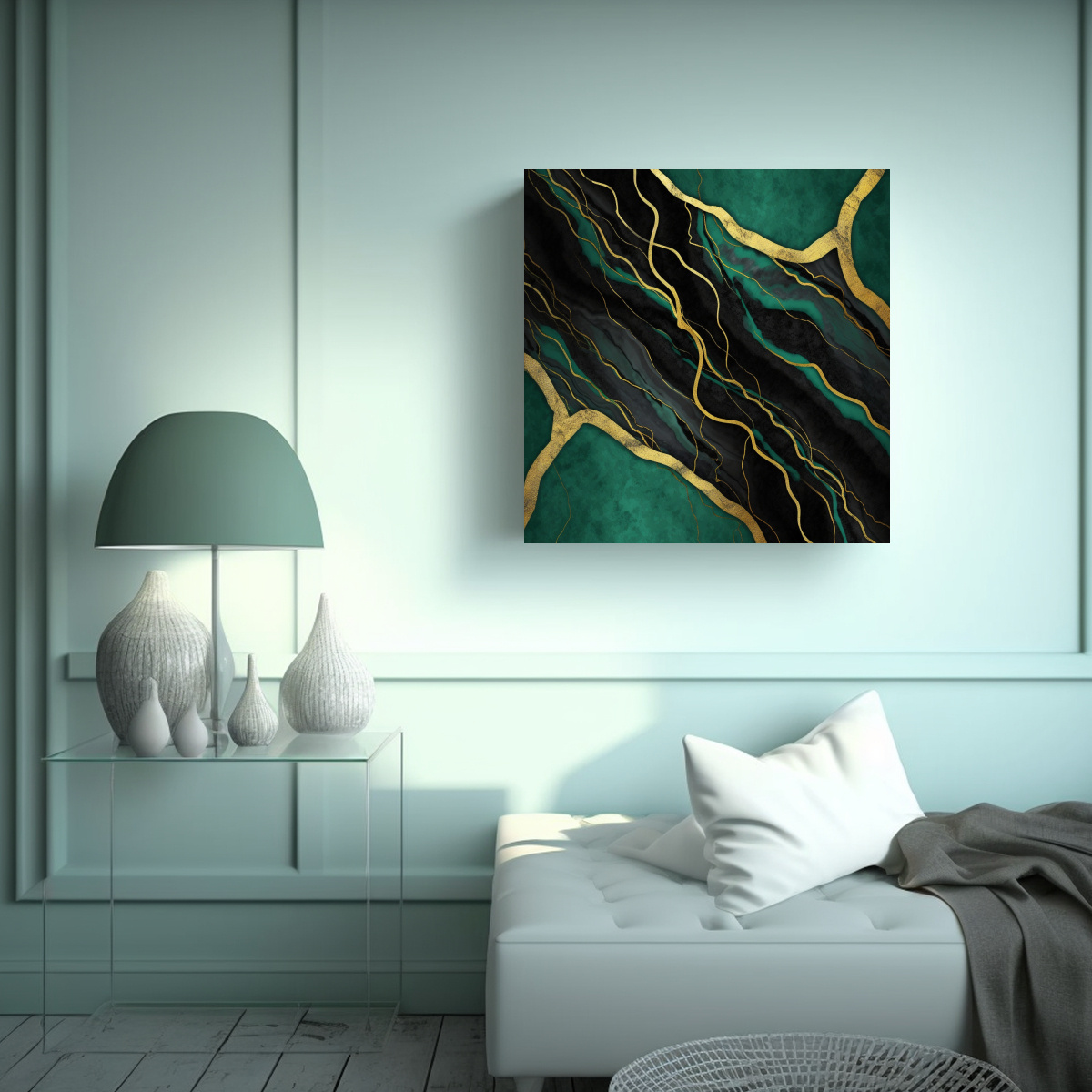 DecoCuadros te ofrece una pintura decorativa de mármol con líneas doradas y verde oscuro de alta calidad y precios económicos Con nuestros cuadros impresos en tela de alta calidad con bastidores de madera, decorarás tu hogar con un diseño exclusivo Aprovecha nuestras entregas rápidas y gratuitas en Santiago, y envíos express a regiones