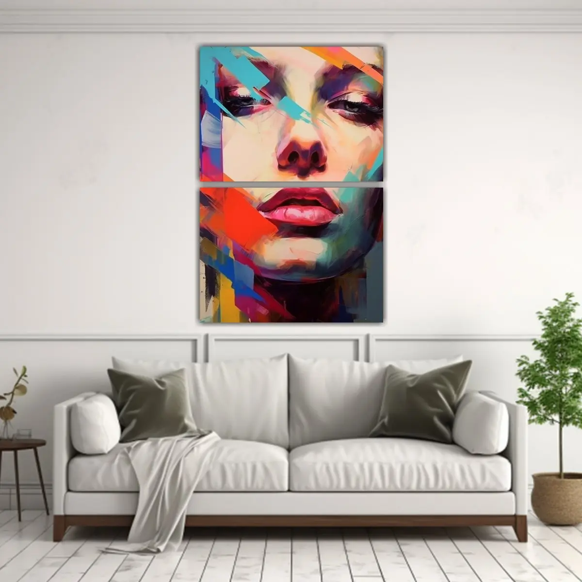 Dale un toque de elegancia a tu sala de estar o dormitorio con nuestra pintura decorativa de mujer en expresión espectacular Colócala sobre una pared de tono claro para resaltar sus hermosos colores También puedes combinarla con muebles en tonos neutros como blanco o gris para crear un ambiente sofisticado y moderno ¡Sorprende a tus invitados con esta pieza única de arte!