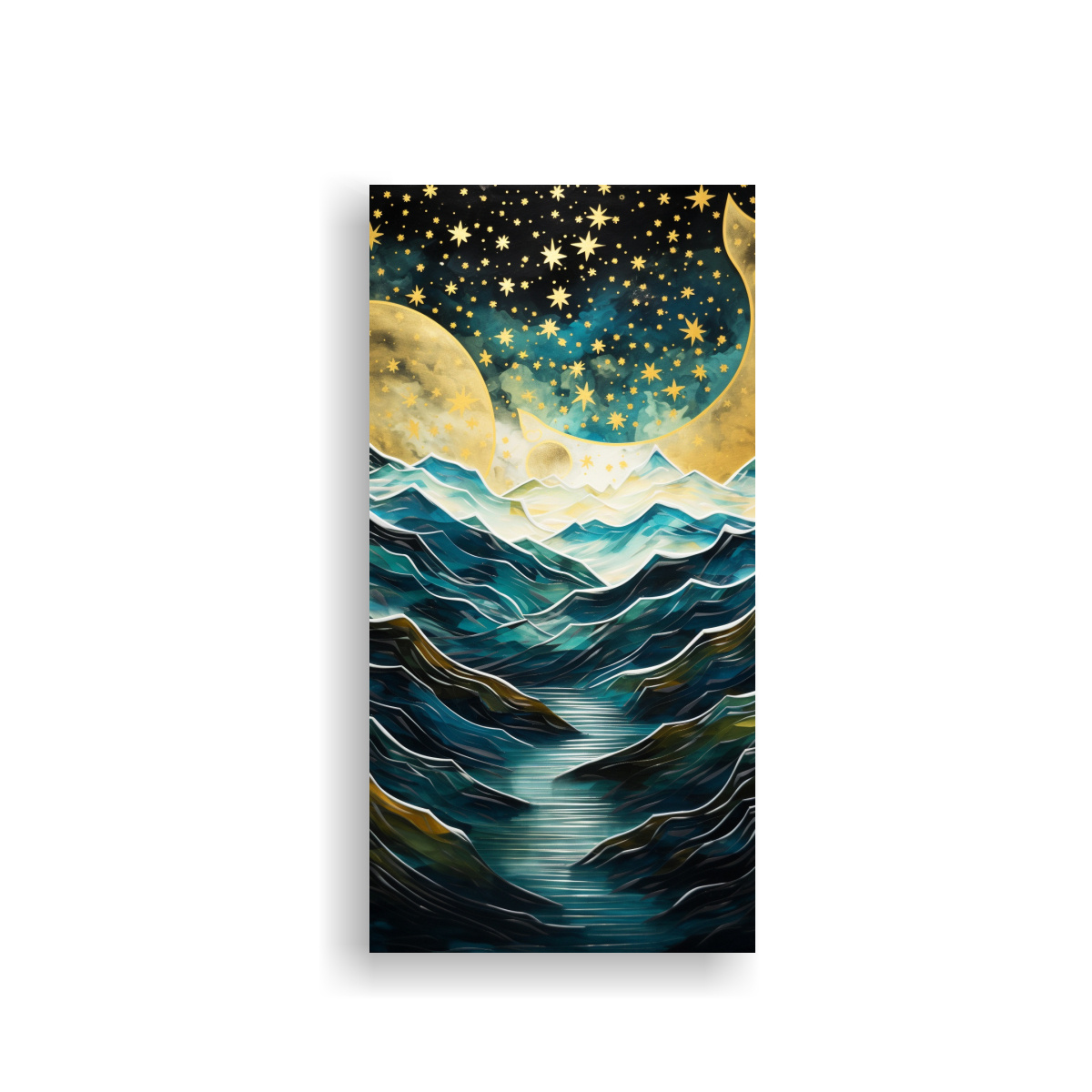 Pintura Decorativa De Paisaje Abstracto De Montañas Nocturnas Con Golpes Alegres