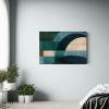 Agrega un toque de elegancia y modernidad a tu sala de estar, dormitorio o espacio de trabajo con esta pintura decorativa de paisaje abstracto en azul y gris Los colores plateado, azul marino grisaceo, gris, turquesa, verde azulado y chocolate se fusionan para crear un efecto visual impactante