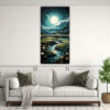 Este cuadro de paisaje montañoso con luna y estrellas es perfecto para decorar tu sala de estar o dormitorio Combínalo con tonos neutros como el blanco, beige o gris, para resaltar su belleza y crear un ambiente relajante y acogedor También puedes colocarlo en la pared sobre un sofá o una cama, para darle un toque de elegancia a tu espacio