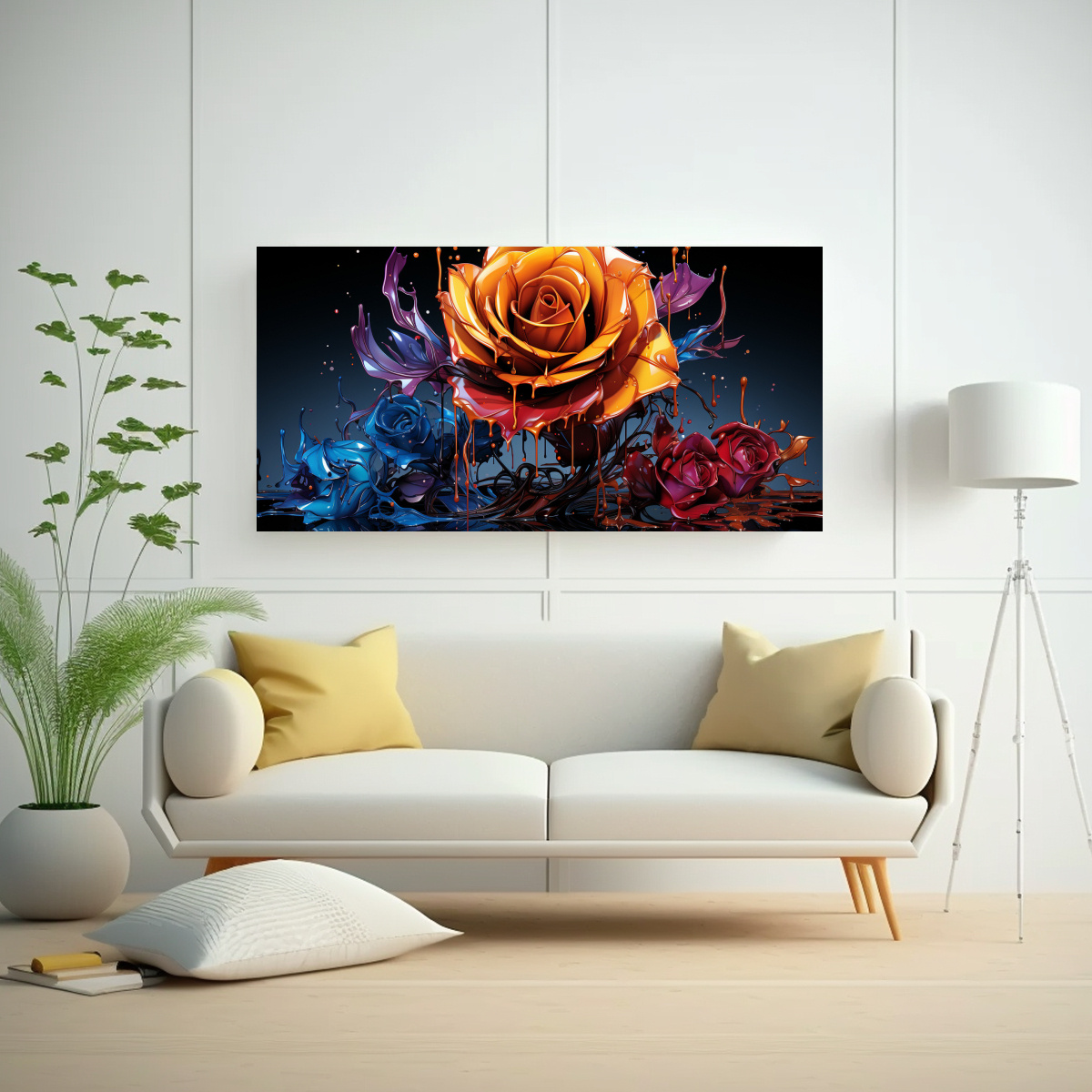 Pintura Decorativa De Rosa Clásica Con Gotas De Pintura En Los Pétalos