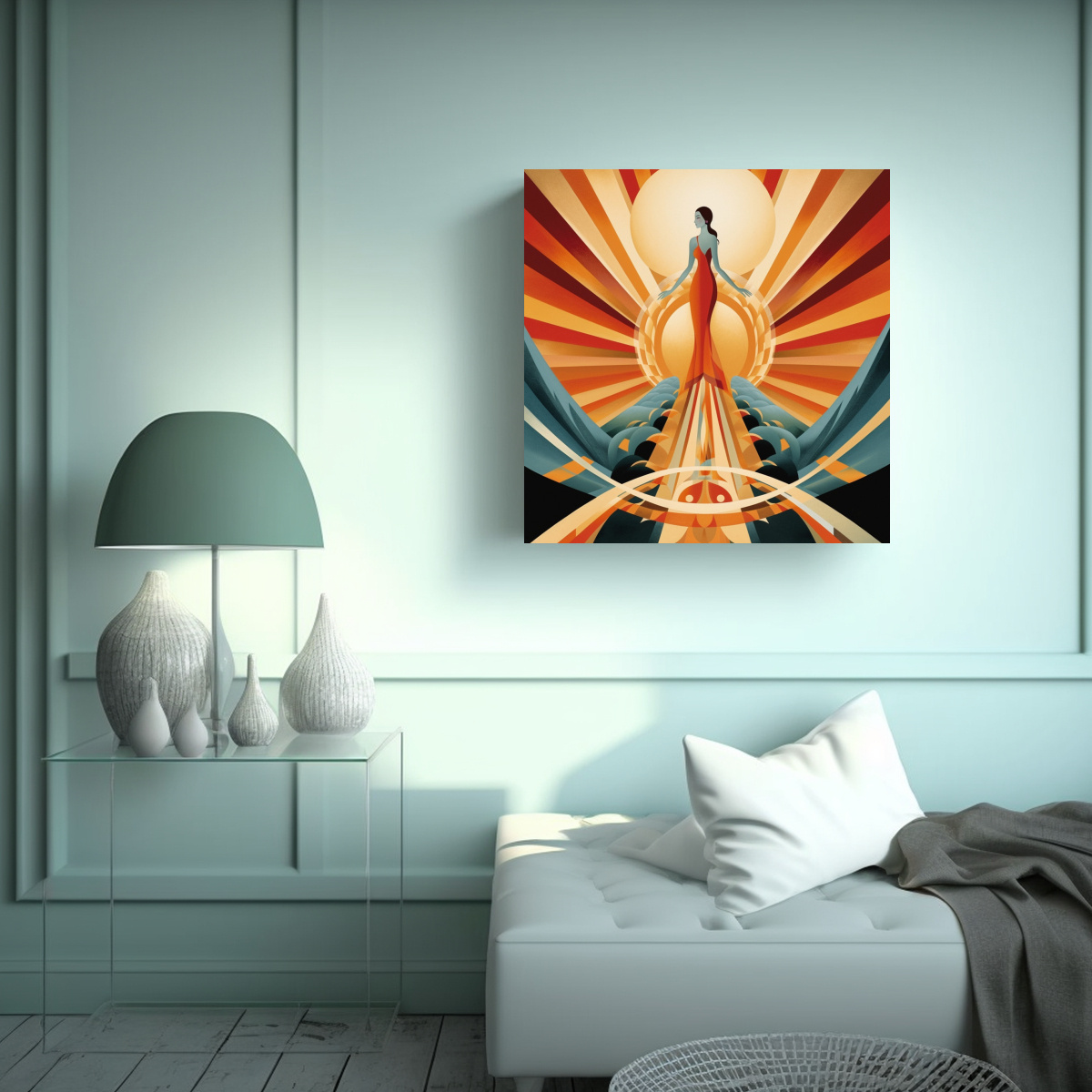 Este cuadro de sol estilo art deco en lienzo será perfecto para decorar tu sala de estar o dormitorio Combínalo con muebles en tonos neutros como beige o gris para resaltar su belleza También puedes colocarlo en una pared blanca para crear un contraste impactante ¡Agrega un toque de estilo y elegancia a tu hogar con este cuadro exclusivo de DecoCuadros!