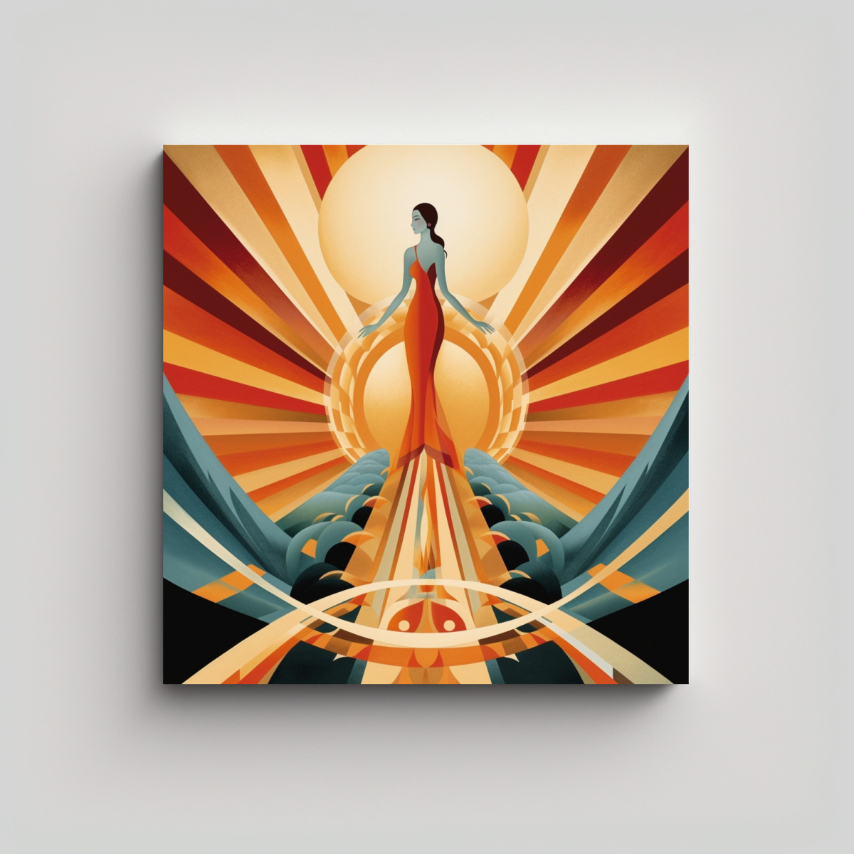 Pintura Decorativa De Sol Estilo Art Deco De Lienzo Expresión Artesanal
