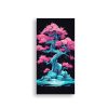 Pintura Decorativa De Tela En Bastidor Conceptual Fantasia De Un Árbol Bonsái De Pino En Turquesa Y Negro Estilo Neonoir