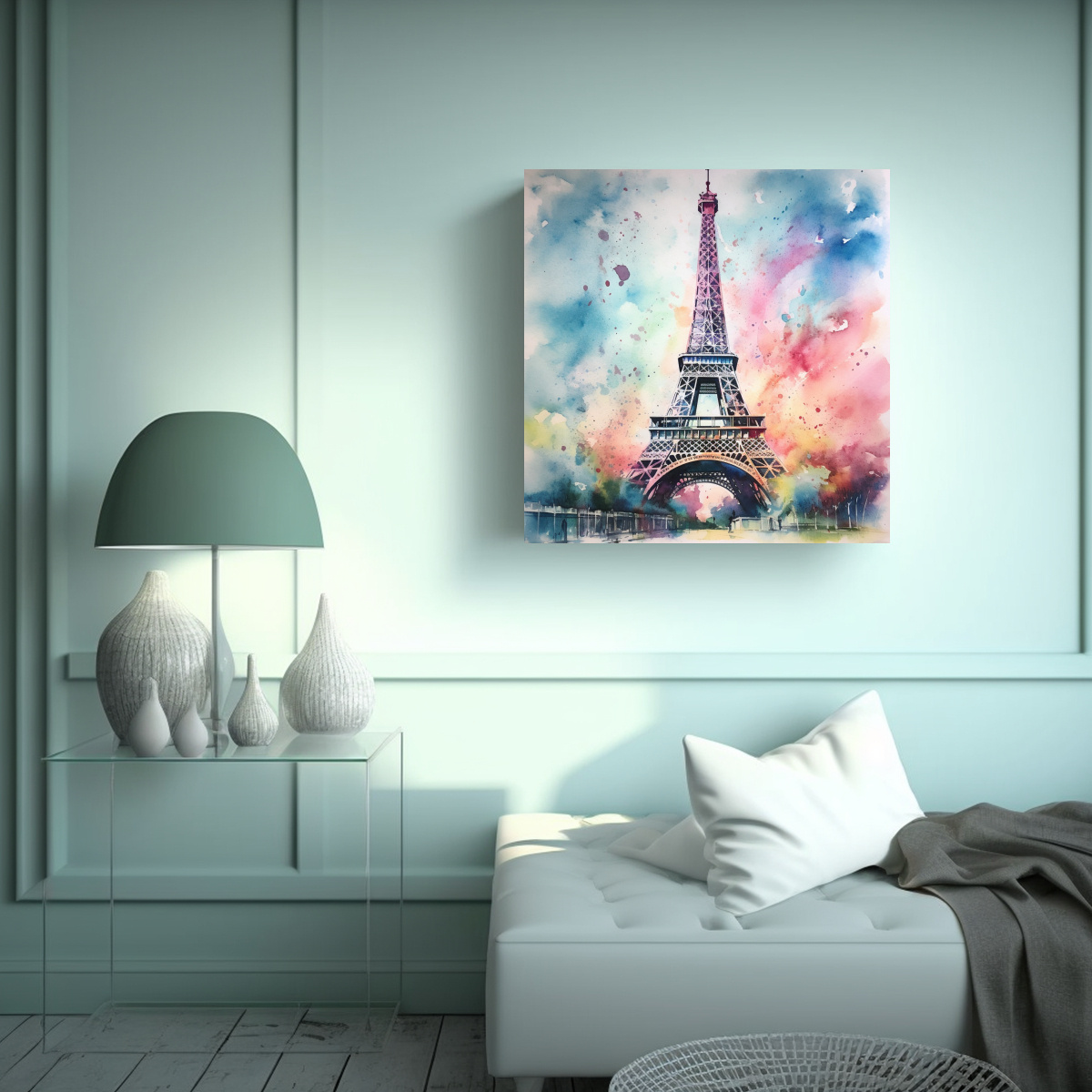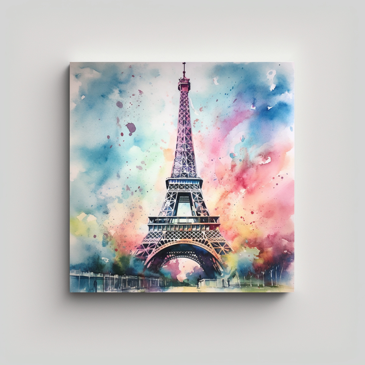 Pintura Decorativa De Tela Sublimada Con Diseño De Torre Eiffel En Acuarela