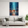 DecoCuadros te ofrece una increíble pintura decorativa de una persona con paraguas en una calle lluviosa Nuestros cuadros son impresos en tela de alta calidad con bastidores de madera Disponibles en colores Azul Marino grisaceo, Turquesa, Coral, Menta, Chocolate, Plateado, Verde Azulado y Carmesí