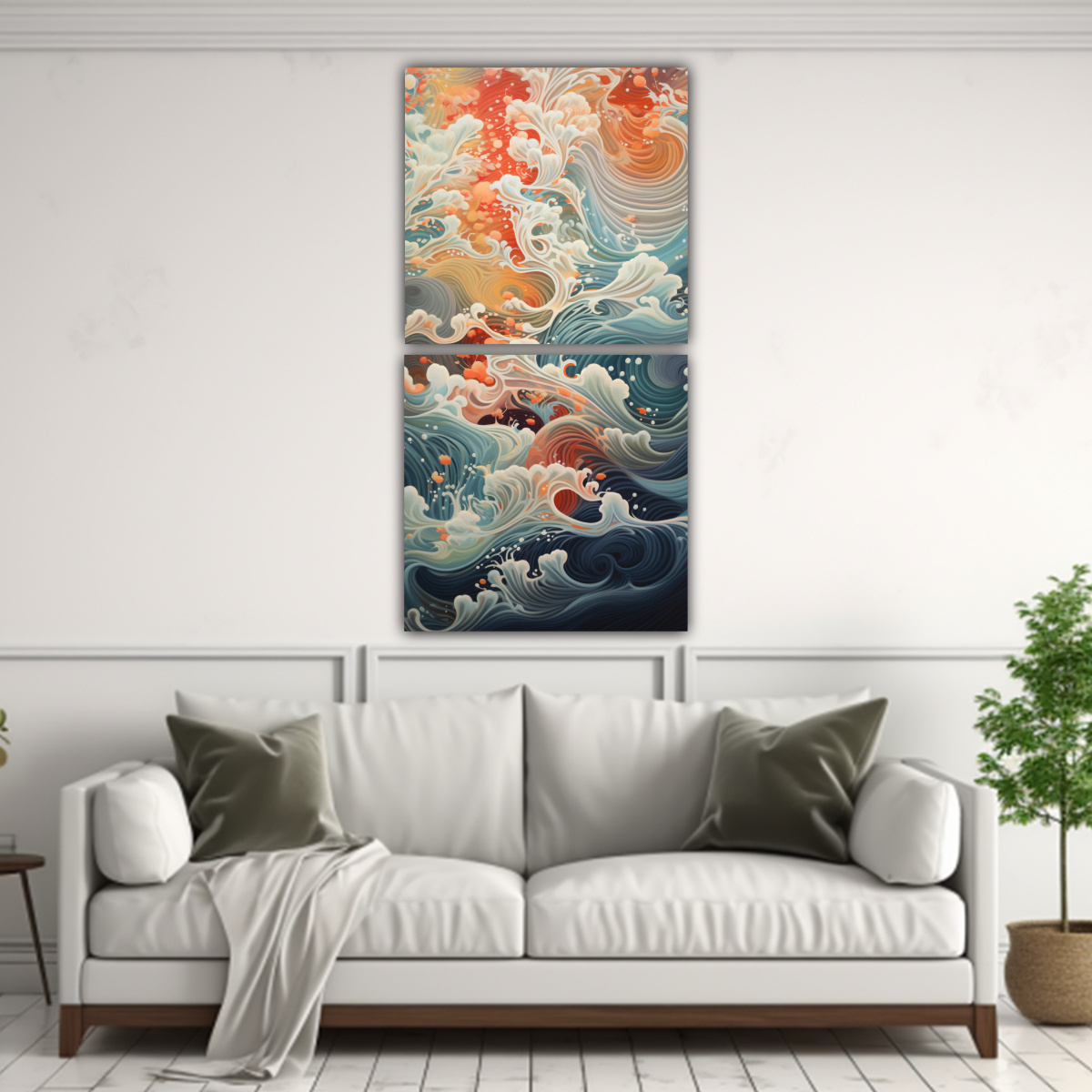 Pintura Decorativa Diptico Creativa Con Patrones Abstractos Inspirados En La Intrincada Belleza Giratoria