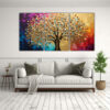 Este cuadro de árbol en oro y arcoíris se vería espectacular colocado sobre la cama en el dormitorio Combínalo con tonos neutros en las paredes y muebles para resaltar su belleza y crear un ambiente relajante y elegante