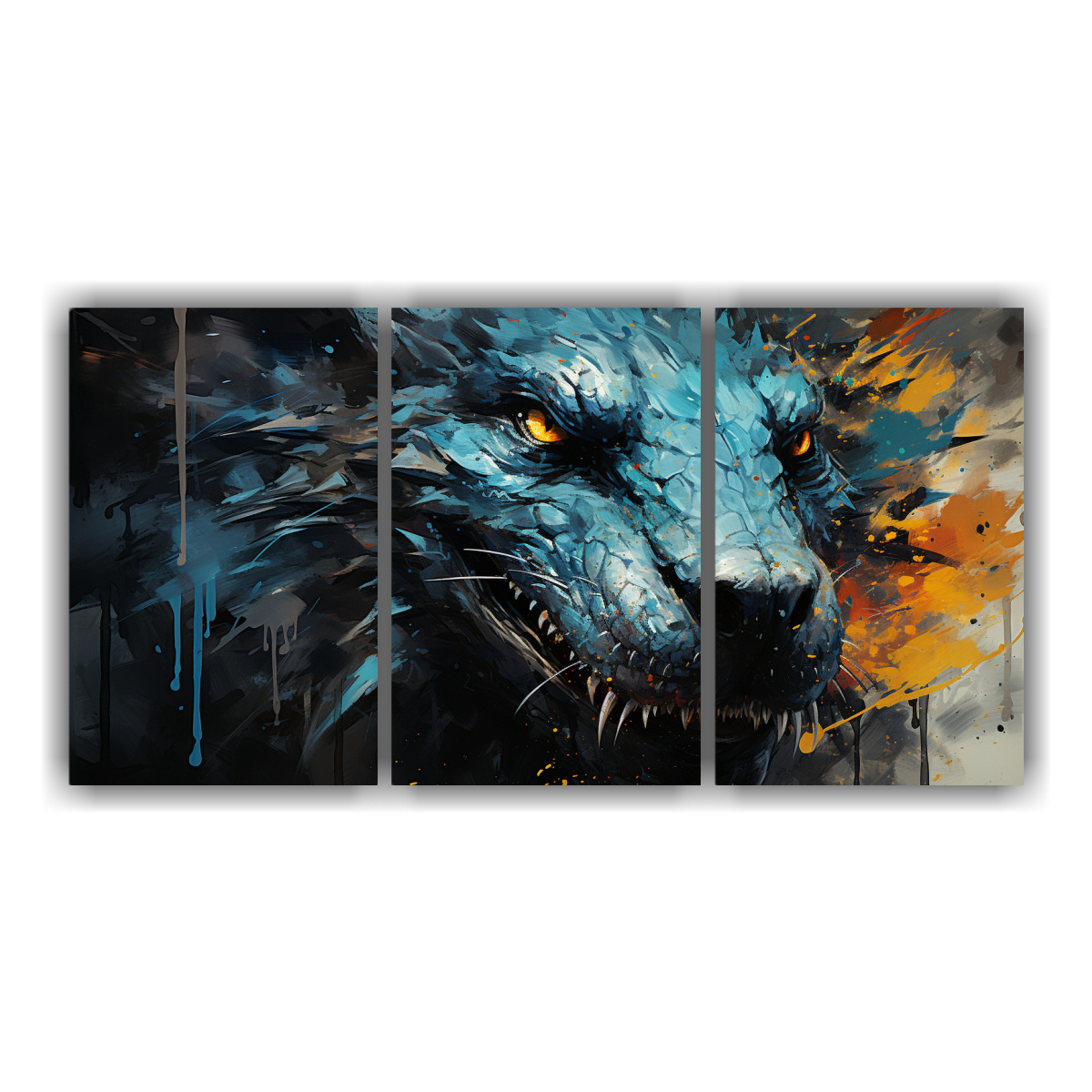 Este cuadro decorativo de dragón en colores vibrantes encajaría perfectamente en un salón moderno o una oficina creativa Colócalo en una pared de tonos neutros para que resalte y se convierta en el centro de atención Combínalo con muebles en blanco o negro para crear un contraste elegante y sofisticado