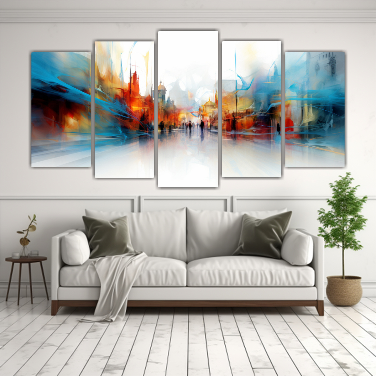 DecoCuadros te ofrece un cuadro decorativo impresionante y elegante, que captura el vibrante pulso de una bulliciosa plaza de mercado Con tonos azul marino grisáceo, chocolate, beige, gris, plateado, menta y turquesa, este políptico es perfecto para añadir un toque sofisticado a cualquier espacio