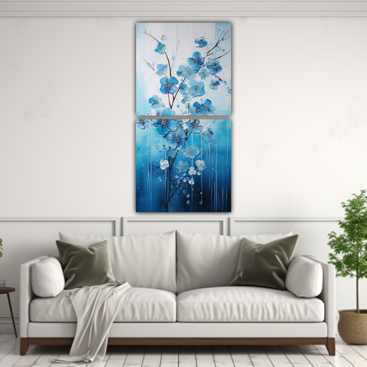Este cuadro se vería hermoso colocado en el salón o en la habitación principal, combinando con muebles de tonos neutros como blanco o gris para resaltar su impactante diseño en azul y plateado ¡Agrega un toque de modernidad y sofisticación a tu hogar con este cuadro exclusivo!