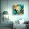 DecoCuadros te ofrece un cuadro decorativo en bastidor de alta resolución con un fondo de tinta turquesa sutil y dorado Los colores azul marino grisáceo, coral, gris, turquesa, negro, menta, beige y chocolate se combinan de forma elegante y moderna Nuestros cuadros están impresos en tela de alta calidad y cuentan con bastidores de madera, lo que garantiza durabilidad y resistencia