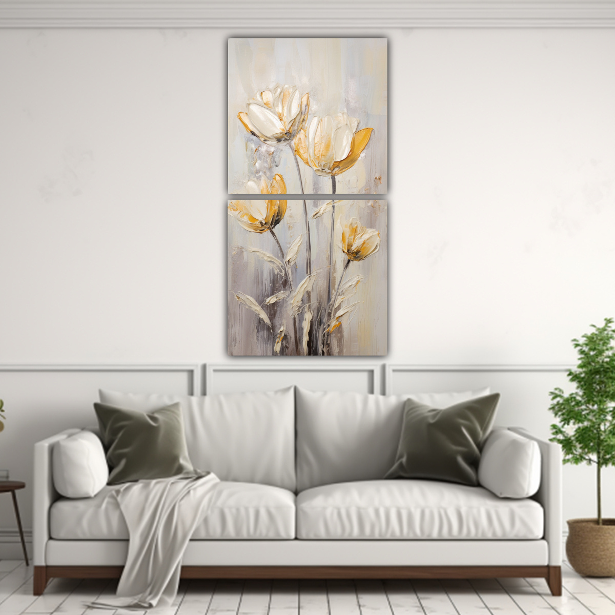 Pintura Decorativa En Lienzo Estilo TULIPANES Dorados
