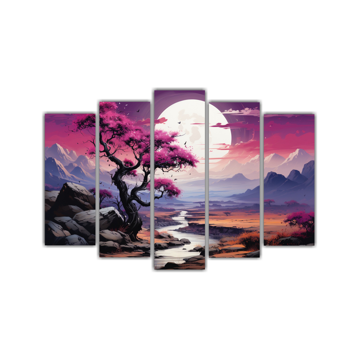 Pintura Decorativa En Lienzo: Joshua Tree En Tonos Púrpura Y Negro, Atmósfera Neonoir.