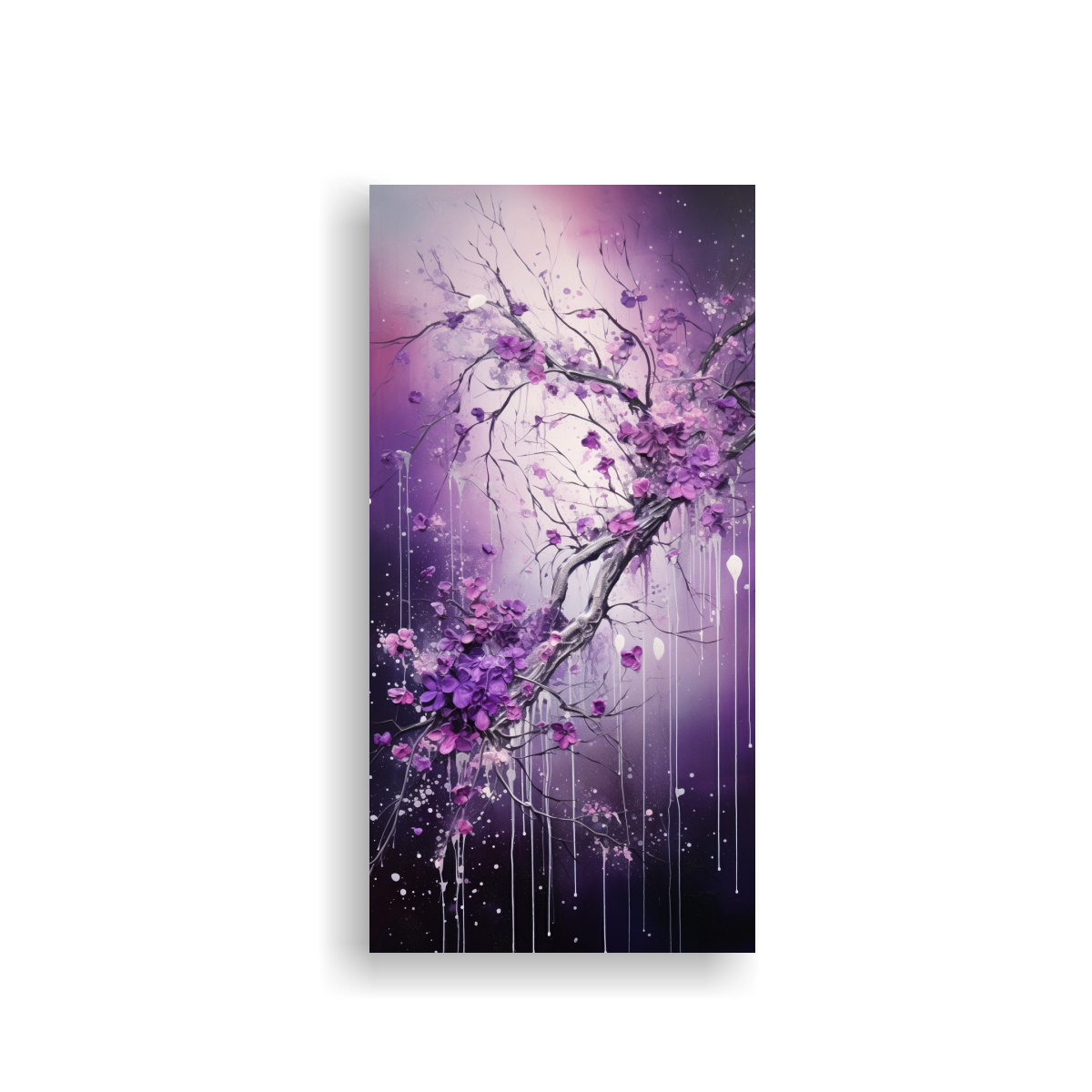 Este cuadro es perfecto para decorar una sala de estar o dormitorio con una temática moderna o contemporánea Puedes colocarlo sobre un mueble o colgarlo en la pared, creando un punto focal en el espacio Combínalo con cojines y cortinas en tonos morados y plateados para lograr una armonía visual en la habitación