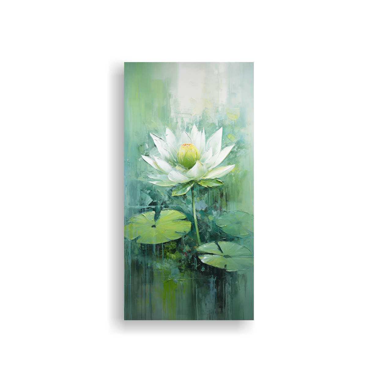 Pintura Decorativa Escenario Con Loto Verde En Lienzo Al Estilo De La Composición Conceptual