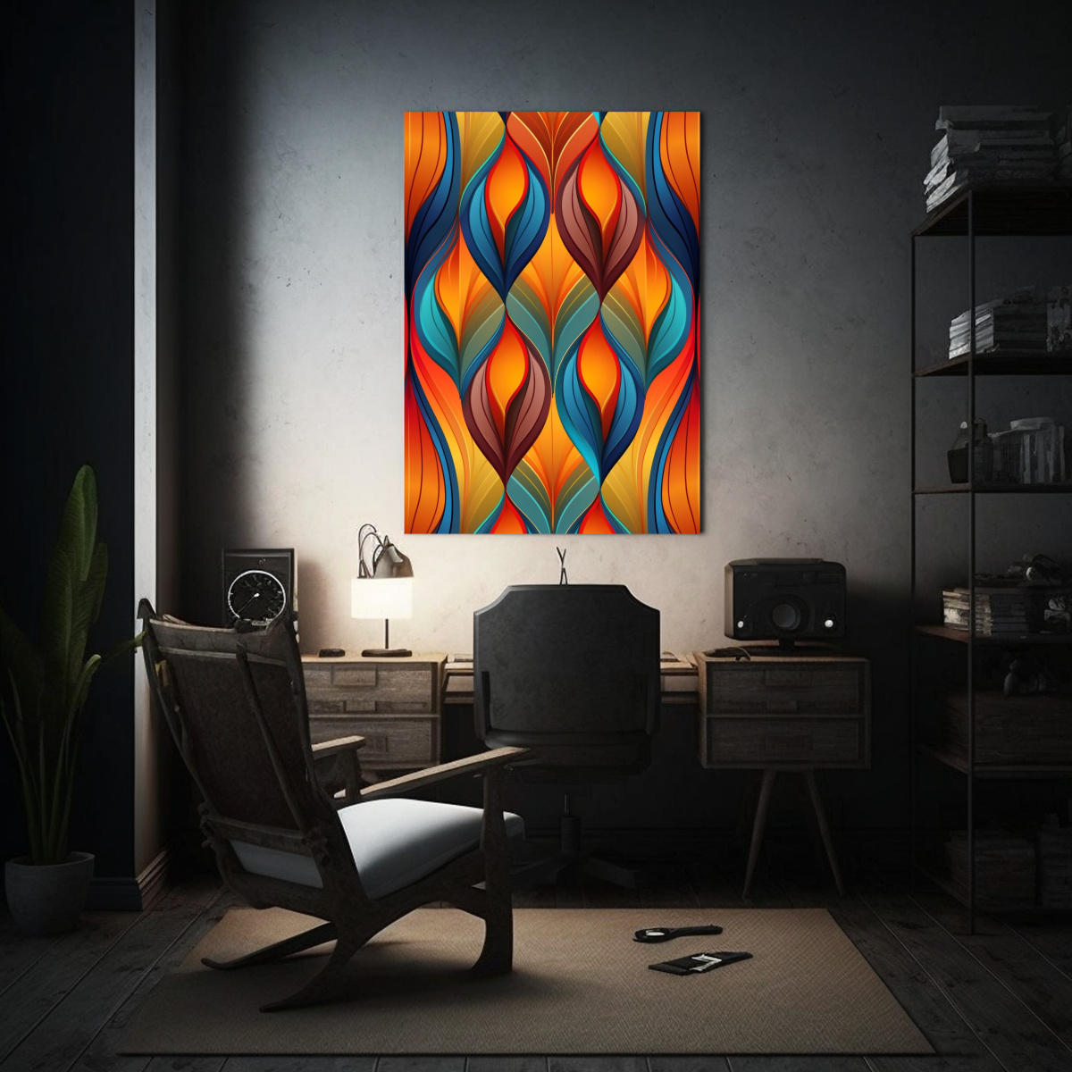 Decora tu espacio con el cuadro decorativo estilo Alan Kenny, patrón Arte Moderno Equilibrio Los colores Coral, Azul Marino grisaceo, Chocolate, Dorado, Carmesí, Turquesa, Menta y Negro se combinan perfectamente en esta impresión de alta calidad en tela con bastidores de madera Diseño exclusivo de DecoCuadros