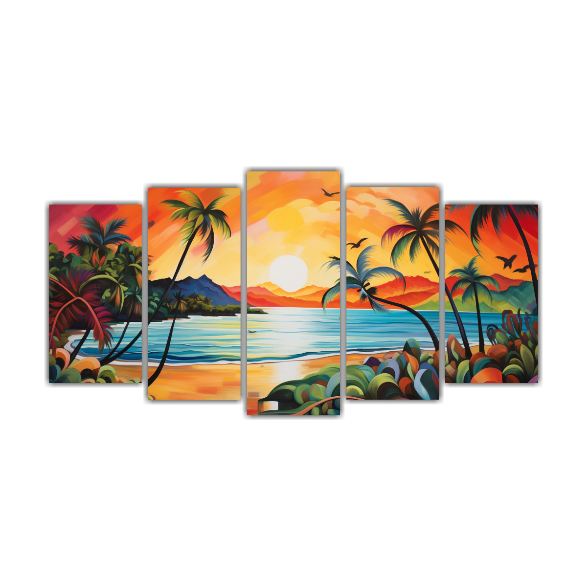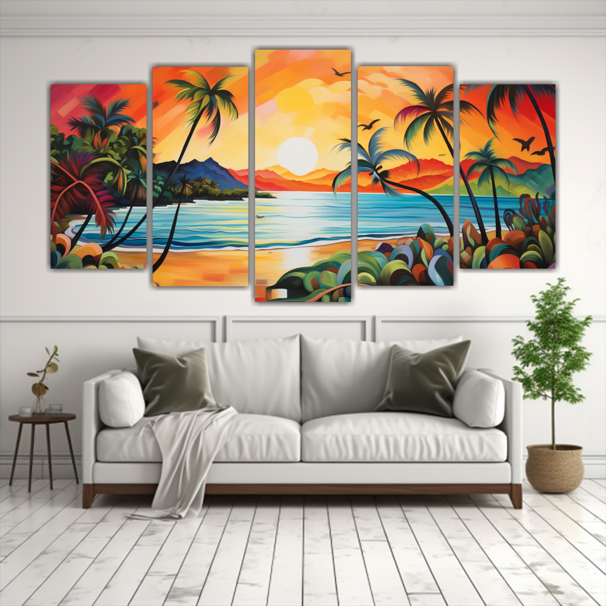 Pintura Decorativa Estilo Galería: Interpretación Abstracta De Una Escena De Playa Tropical