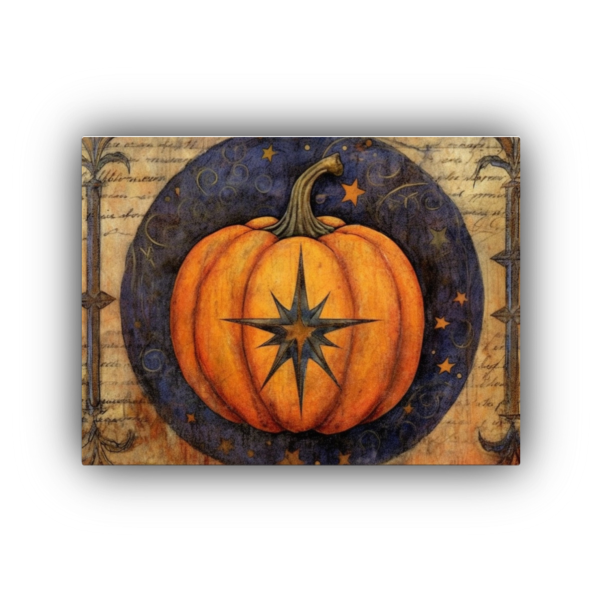 Pintura Decorativa Estilo Halloween Con Calabazas Y Elementos Mixtos.