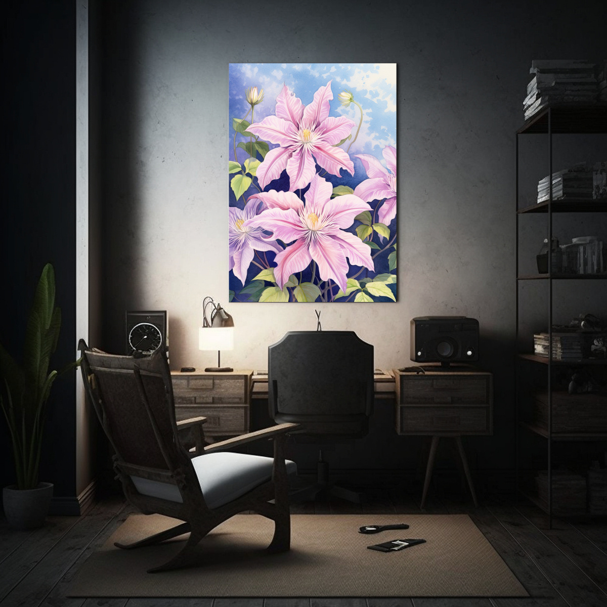 Pintura Decorativa Estilo Ukiyoe De La Flor De Clemátide Stepanyan Clematis En Concepto De Comedor, 1 Pieza