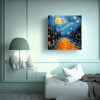 Pintura Decorativa Estilo Van Gogh Azul Naranja Noche Luna