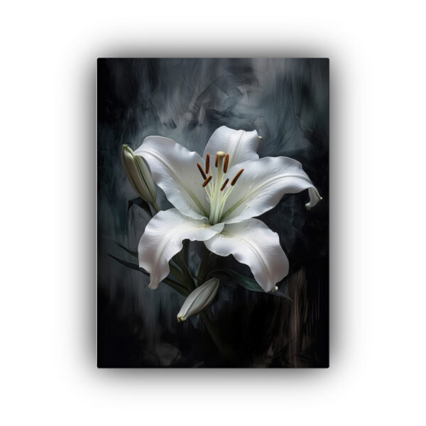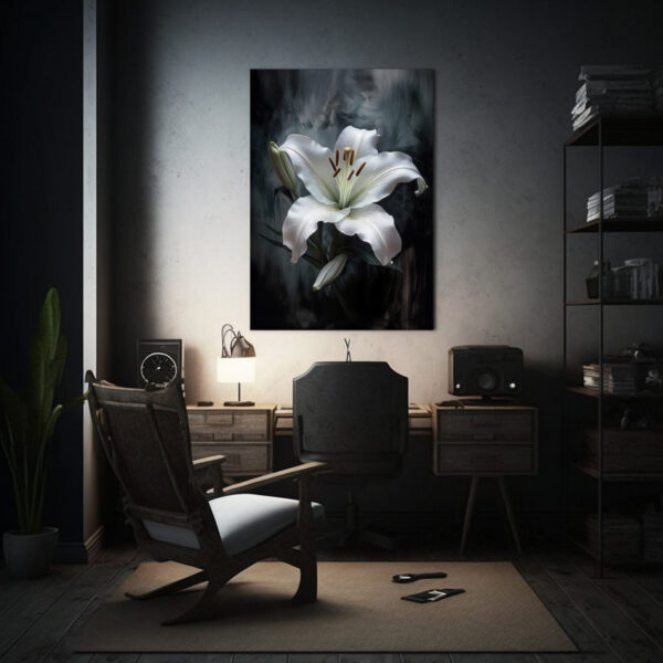 Pintura Decorativa Exclusiva De Lirios Blancos Sobre Fondo Gris Y Negro