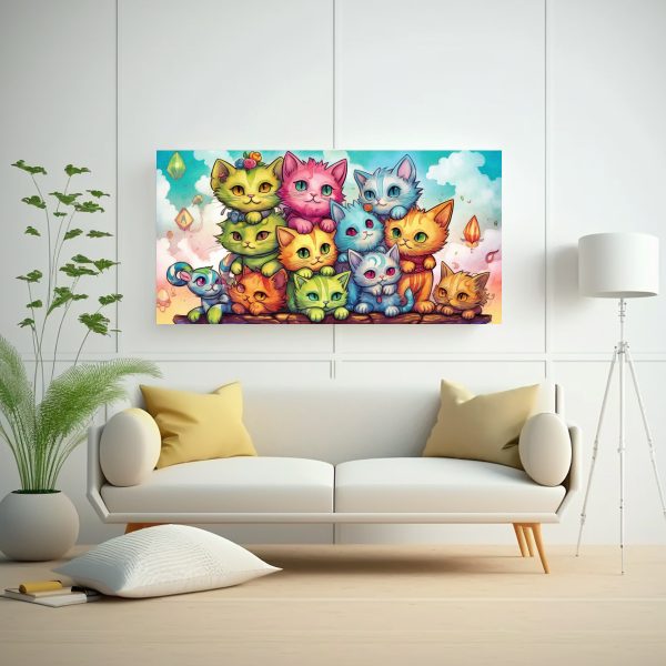 Pintura Decorativa Gatos En Pila Mirando Hacia Horizonte